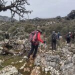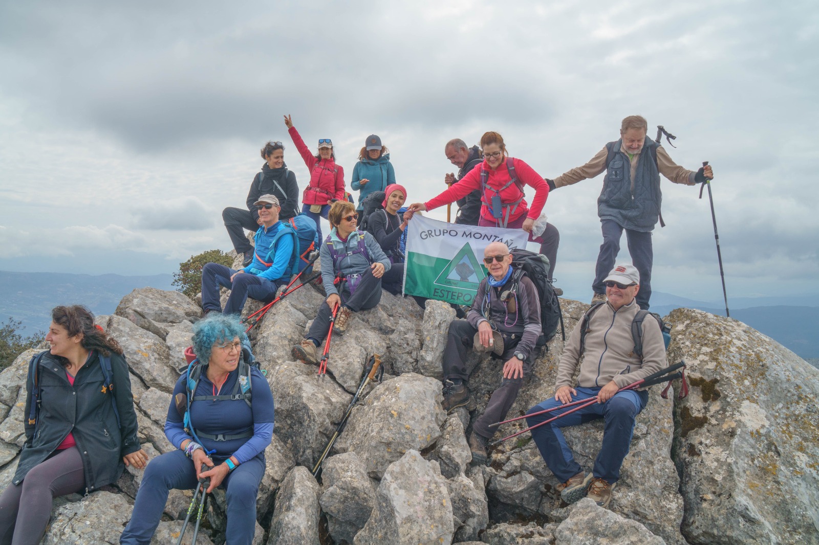 Al llegar al tercer pico, una pequeña parte del grupo decide que han tenido bastante subida por hoy, y optan por dar un rodeo para encontrar al grupo al otro lado. Una vez reagrupados nos dirigimos al punto donde pararemos a comer, un poco resguardado del viento, ya que, aunque el día es perfecto para caminar, en cuanto te paras, hace frio.