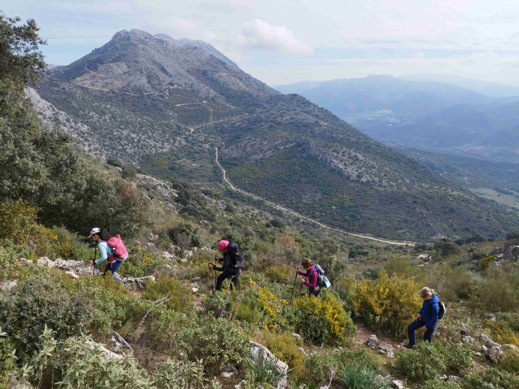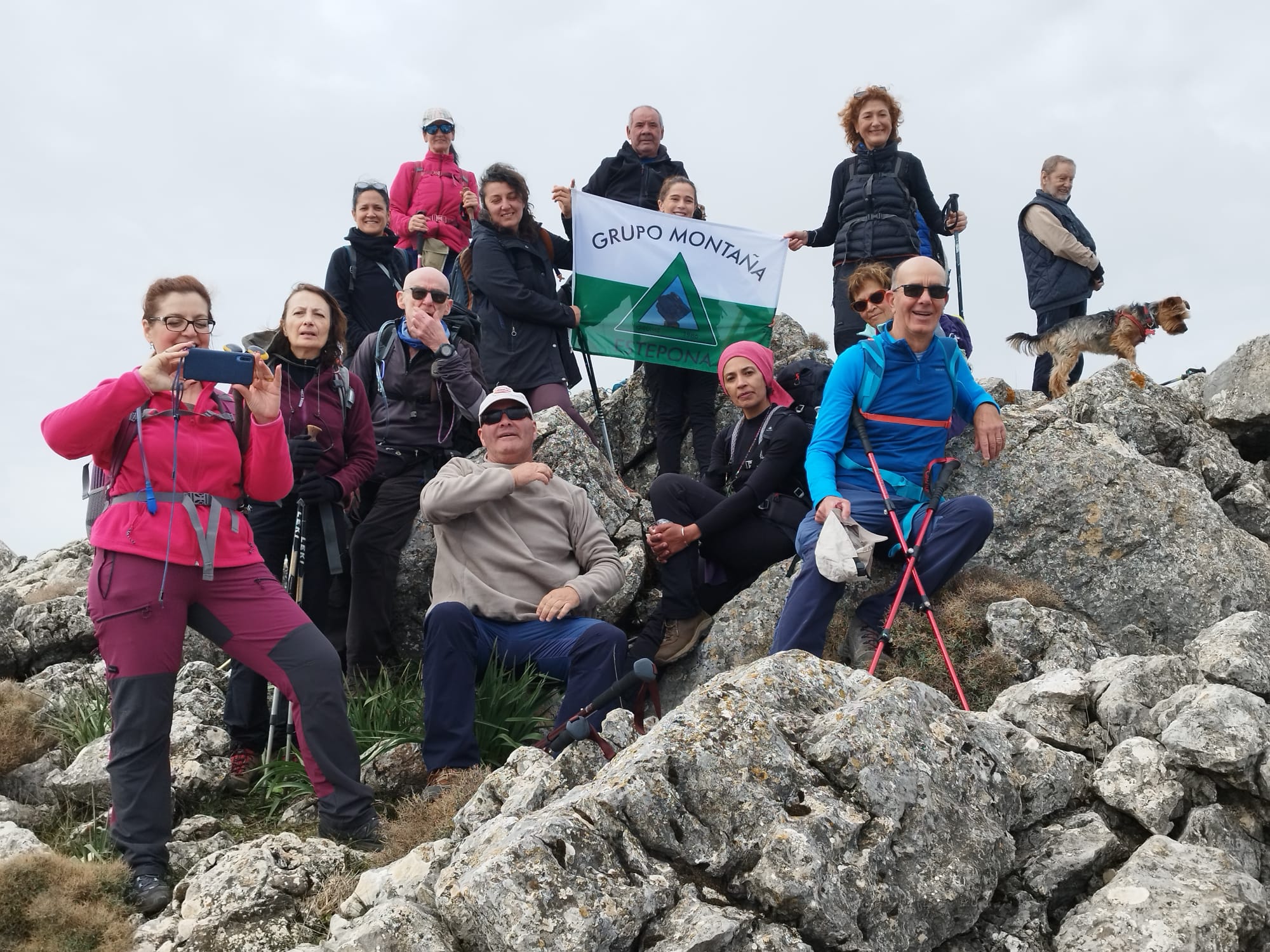 Desde el pico de la Cuca vemos abajo un valle verde, y al fondo, el Hacho de Gaucin, la Crestellina, la sierra de Casares y Sierra Bermeja. Nos deleitamos de las vistas durante unos minutos, y hacemos la foto de grupo antes de dirigirnos al segundo cancho.