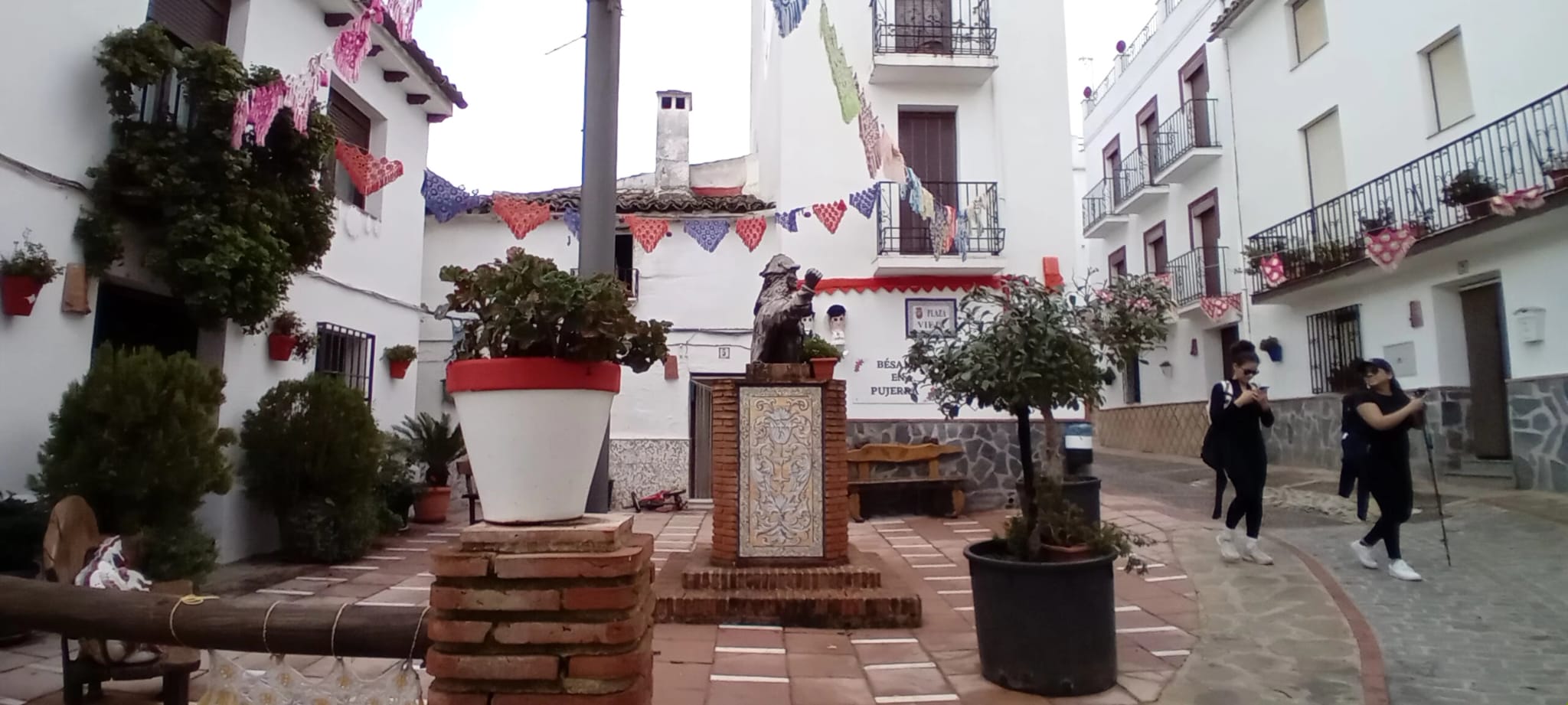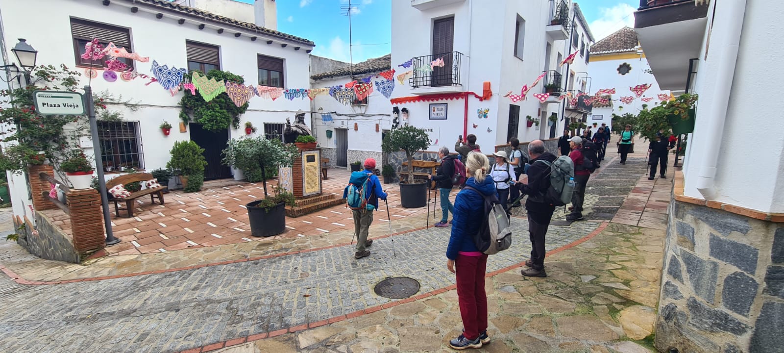 Después de reponer fuerzas nos enfrentamos al último tramo de la jornada, de unos tres kilómetros de distancia hasta Cartajima, subiendo por la Calle Los Riscos, bien hormigonada y con un exigente desnivel, incluida en el Sendero PR-A-224 (Cartajima-Juzcar). Al cabo de unos 300 metros llegamos a la carretera MA-7303, por la que caminamos otros 250 metros antes de enlazar nuevamente con el sendero, en un desvío a la derecha, desde donde ya podemos contemplar en lontananza la silueta de Cartajima.