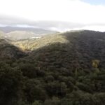 A partir de aquí se acaba la tranquilidad, pues nos encontramos con una estrechísima vereda, poco señalizada y casi cerrada con matorral alto y espinoso, que nos dificulta el avance, siendo necesario consultar el GPS en más de una ocasión. Seguimos bajando, rodeados también de encinas y alcornoques, y algún que otro castaño suelto. 500 metros más abajo cruzamos una portilla y llegamos al Arroyo de La Hiedra, tributario del Río Genal, el cual vadeamos fácilmente. Su único obstáculo es salvar la abundante vegetación existente en ambos lados.