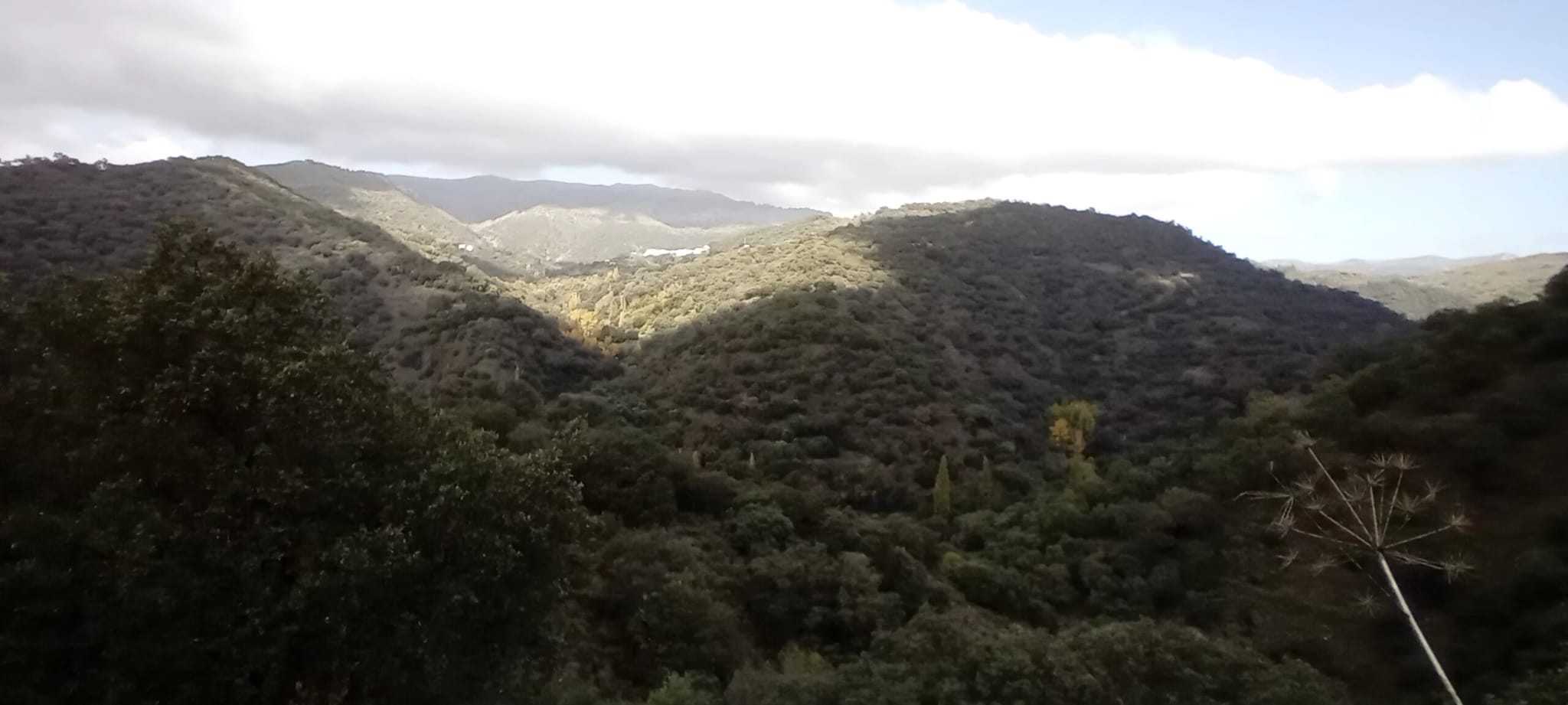 Nos acompaña el rugir del agua del Arroyo Riachuelo a su paso por el barranco formado por dicho arroyo y la Sima del Diablo, el cual transcurre en gran parte paralelo al sendero. Pronto llegamos a una pista terriza, que cruzamos unos pocos metros más abajo y nos adentramos en otro carril de bajada, pero que siguiendo la típica característica del Valle del Genal, rápidamente se convierte en una nueva subida, alternando con algunos tramos hormigonados en ambos sentidos.