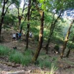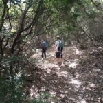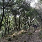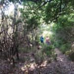 Reanudamos la marcha a través del bosque. Nos encontramos dos dificultades, la primera es que el sendero está muy cerrado por maleza, lo que dificulta el avance, y sufrimos arañazos en brazos y piernas, quienes se han aventurado a llevar pantalón corto. La segunda, es la dificultad en la orientación. El sendero está oculto y en diversas ocasiones tenemos que volver sobre nuestros pasos para encontrarlo.