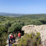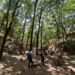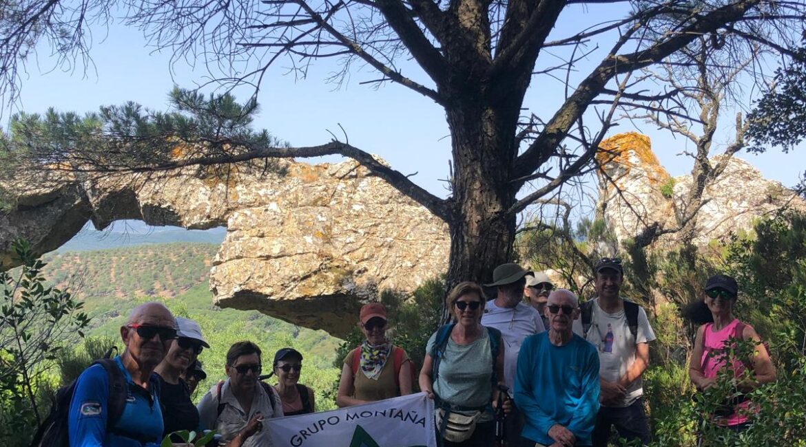 Nos hacemos la foto de grupo y volvemos al carril, para caminar de vuelta. Nos desviamos a la izquierda del carril, y de nuevo nos adentramos en un bosque, bajamos por la Garganta del Agua, la Garganta del Cañuelo y, paramos a comer.