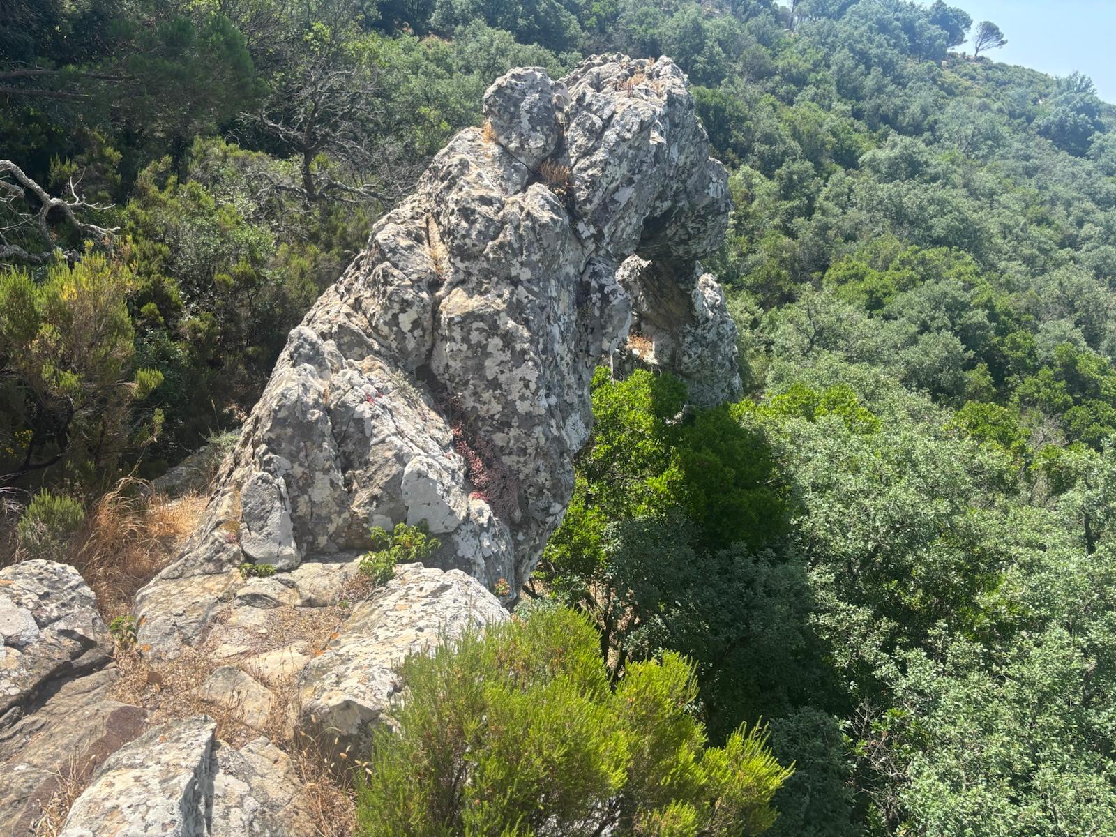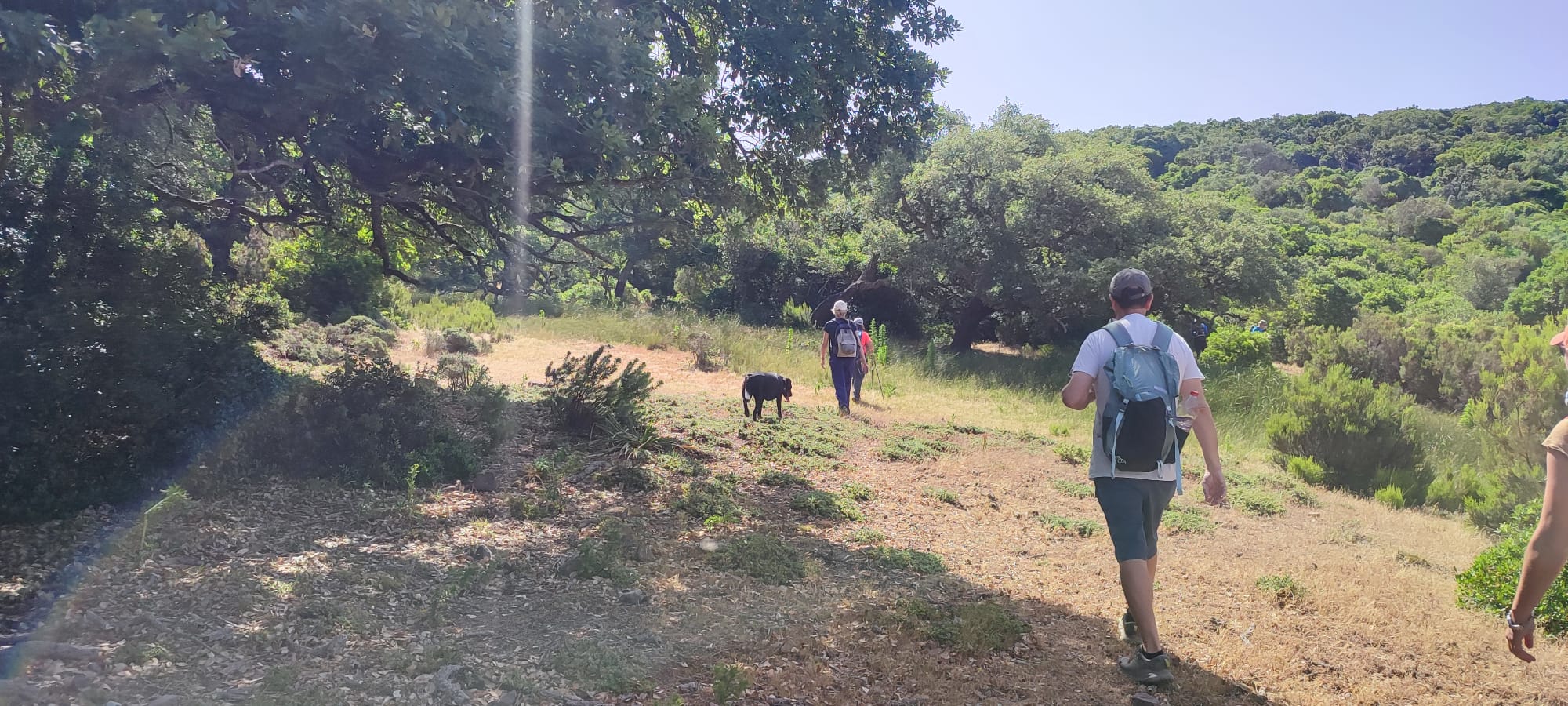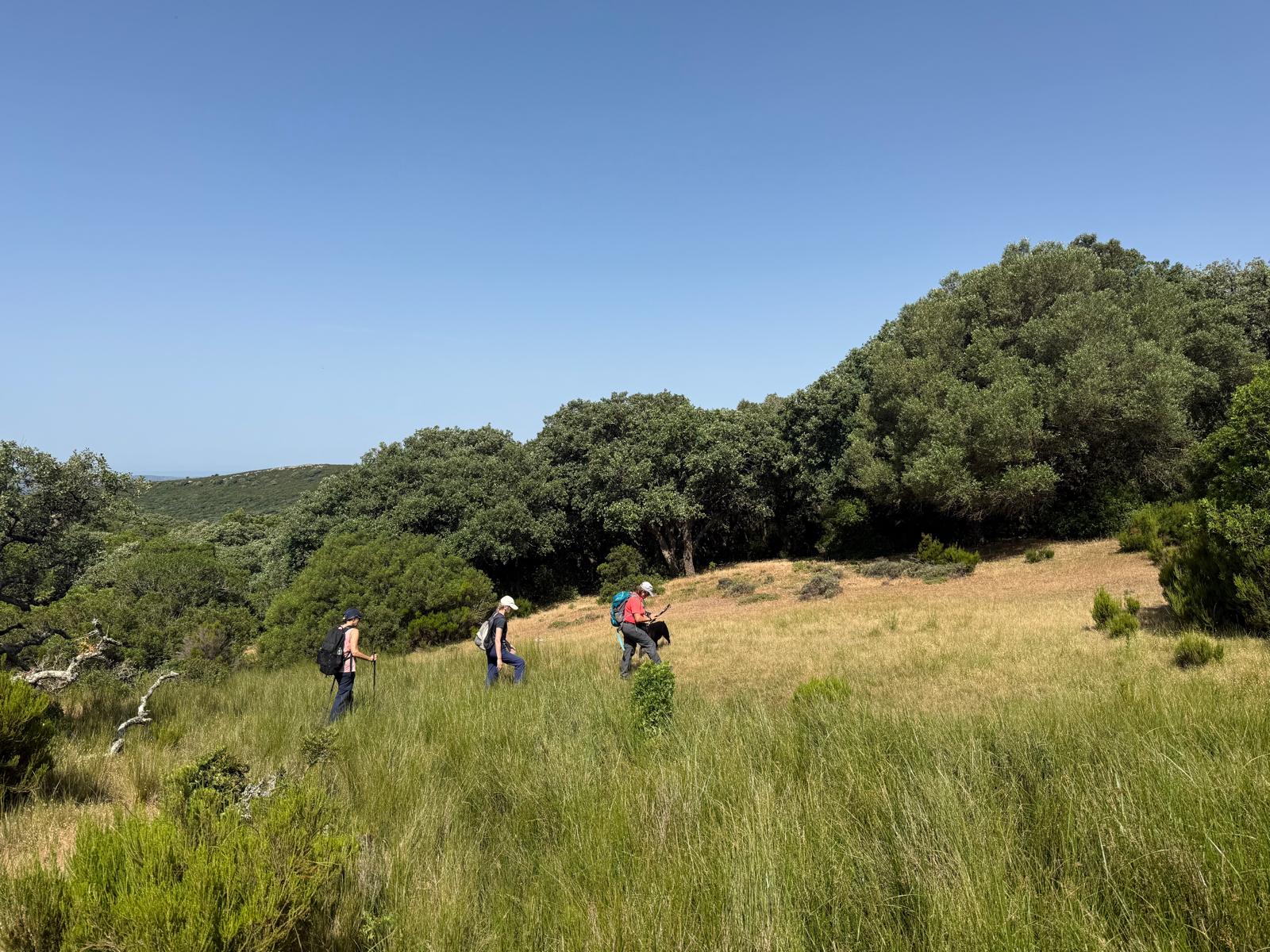 Reanudamos la marcha a través del bosque. Nos encontramos dos dificultades, la primera es que el sendero está muy cerrado por maleza, lo que dificulta el avance, y sufrimos arañazos en brazos y piernas, quienes se han aventurado a llevar pantalón corto. La segunda, es la dificultad en la orientación. El sendero está oculto y en diversas ocasiones tenemos que volver sobre nuestros pasos para encontrarlo.