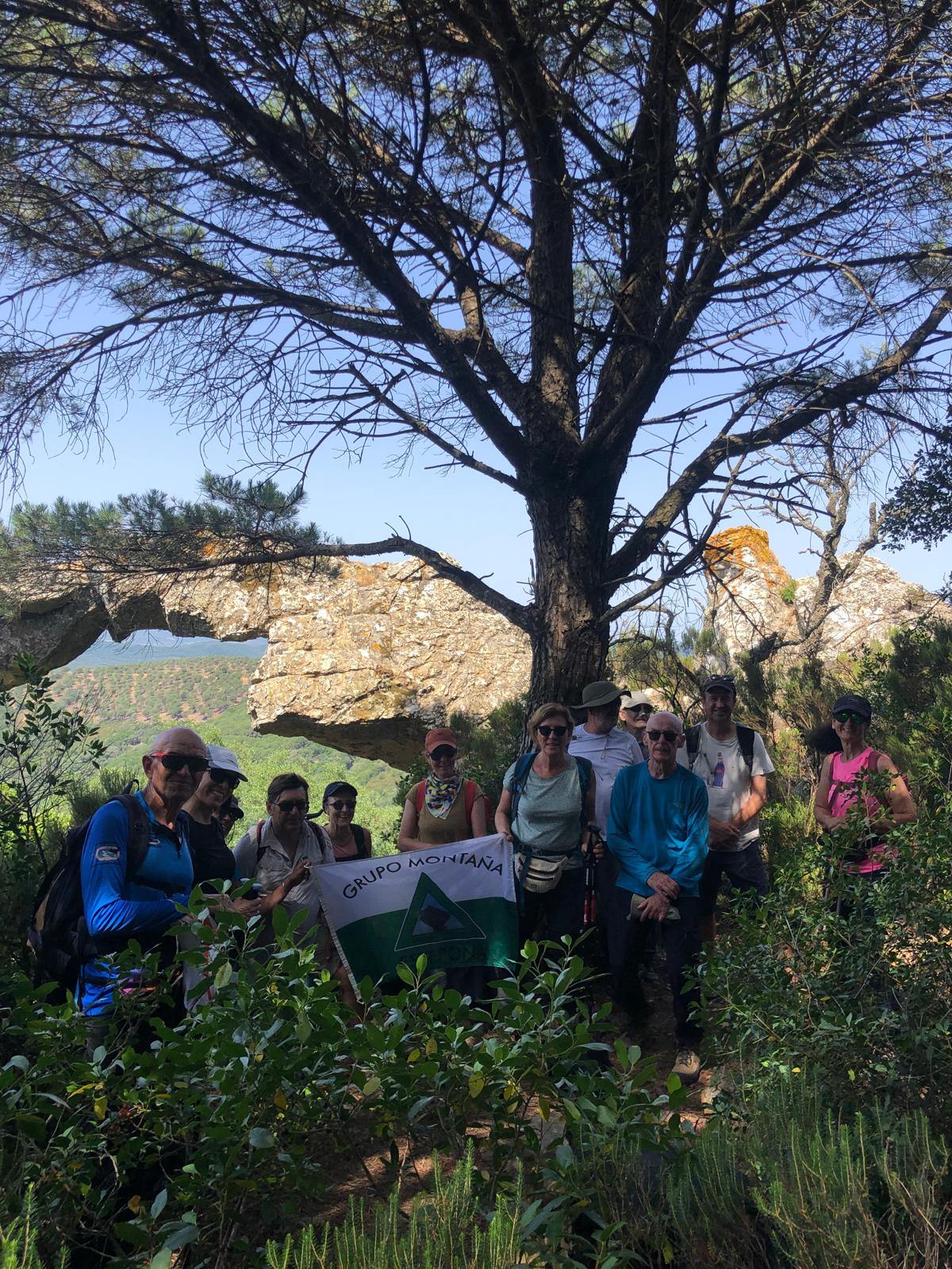 Nos hacemos la foto de grupo y volvemos al carril, para caminar de vuelta. Nos desviamos a la izquierda del carril, y de nuevo nos adentramos en un bosque, bajamos por la Garganta del Agua, la Garganta del Cañuelo y, paramos a comer.