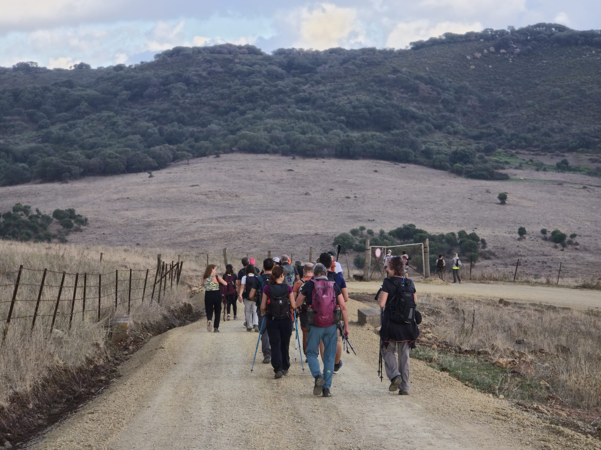 Después anduvimos otro rato más en llano, apreciando los anchos prados de pinos y alcornoques, además de un rebaño de vacas que nos dieron la bienvenida en su territorio, aunque algunos desconfiamos de su hospitalidad por sus miradas como queriendo decir “¿qué hacen estos humanos por aquí?” con toda la razón, ya que estaban con sus crías y debemos reconocer que los humanos no somos de fiar para los animales, que son seres nobles e inocentes.