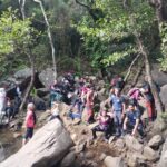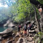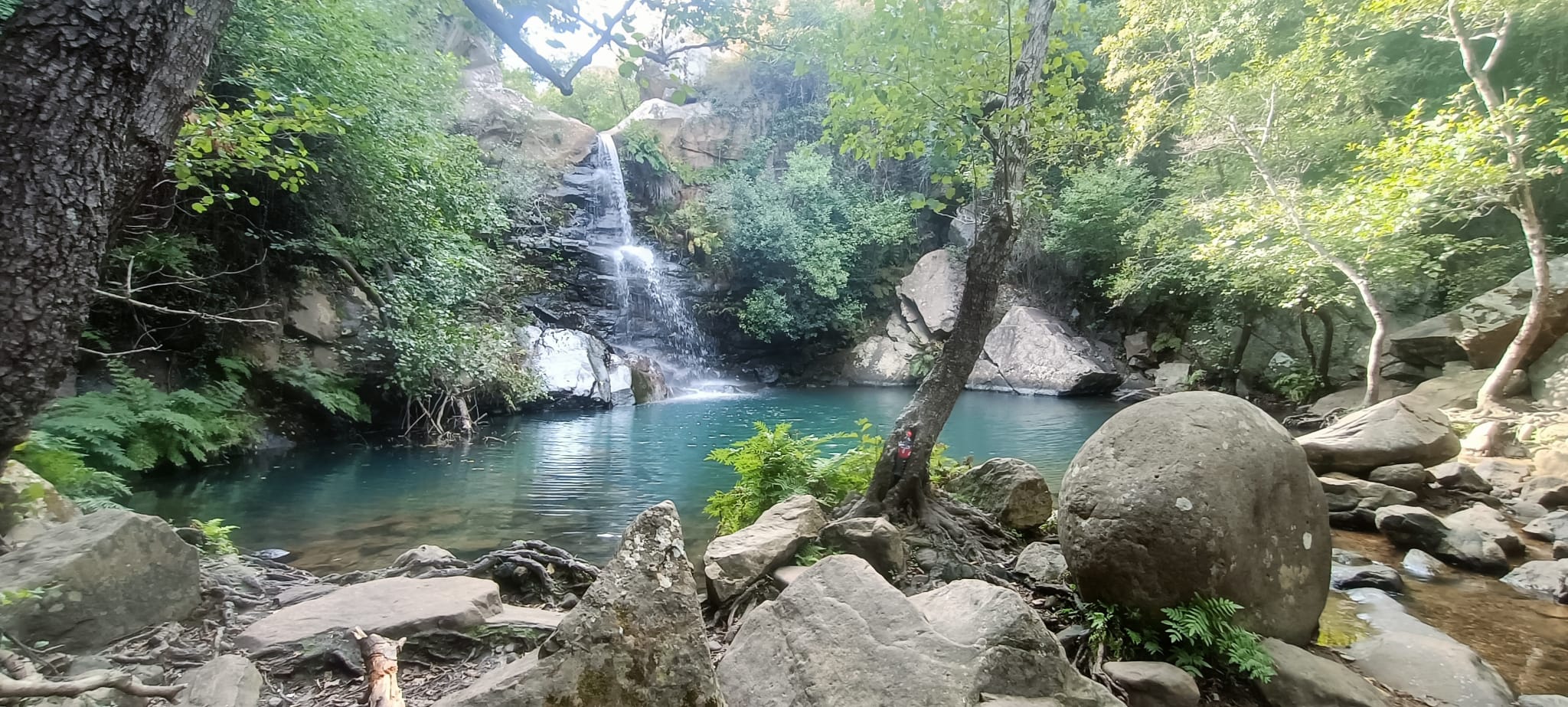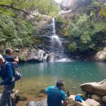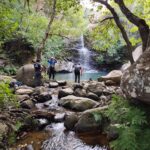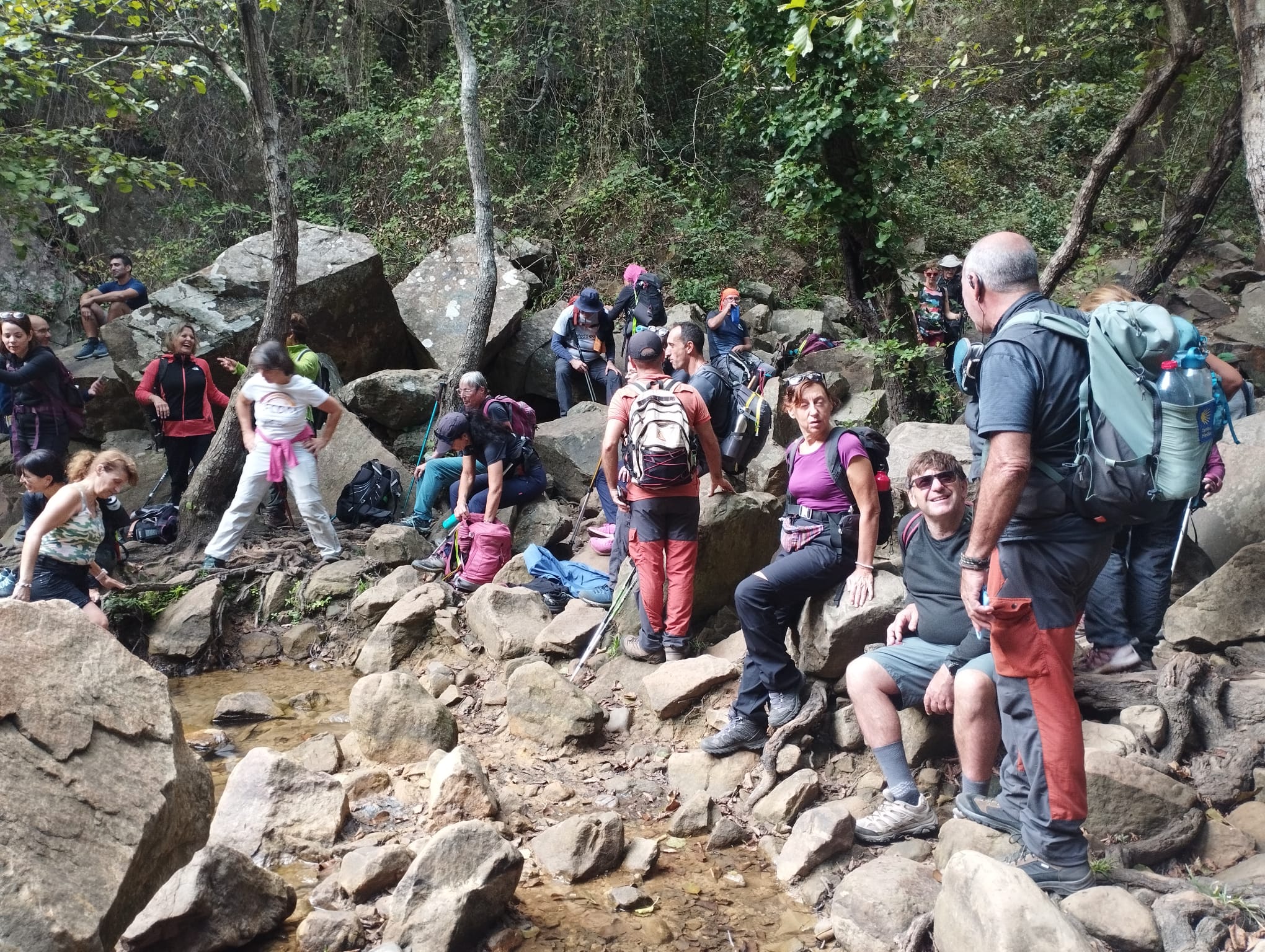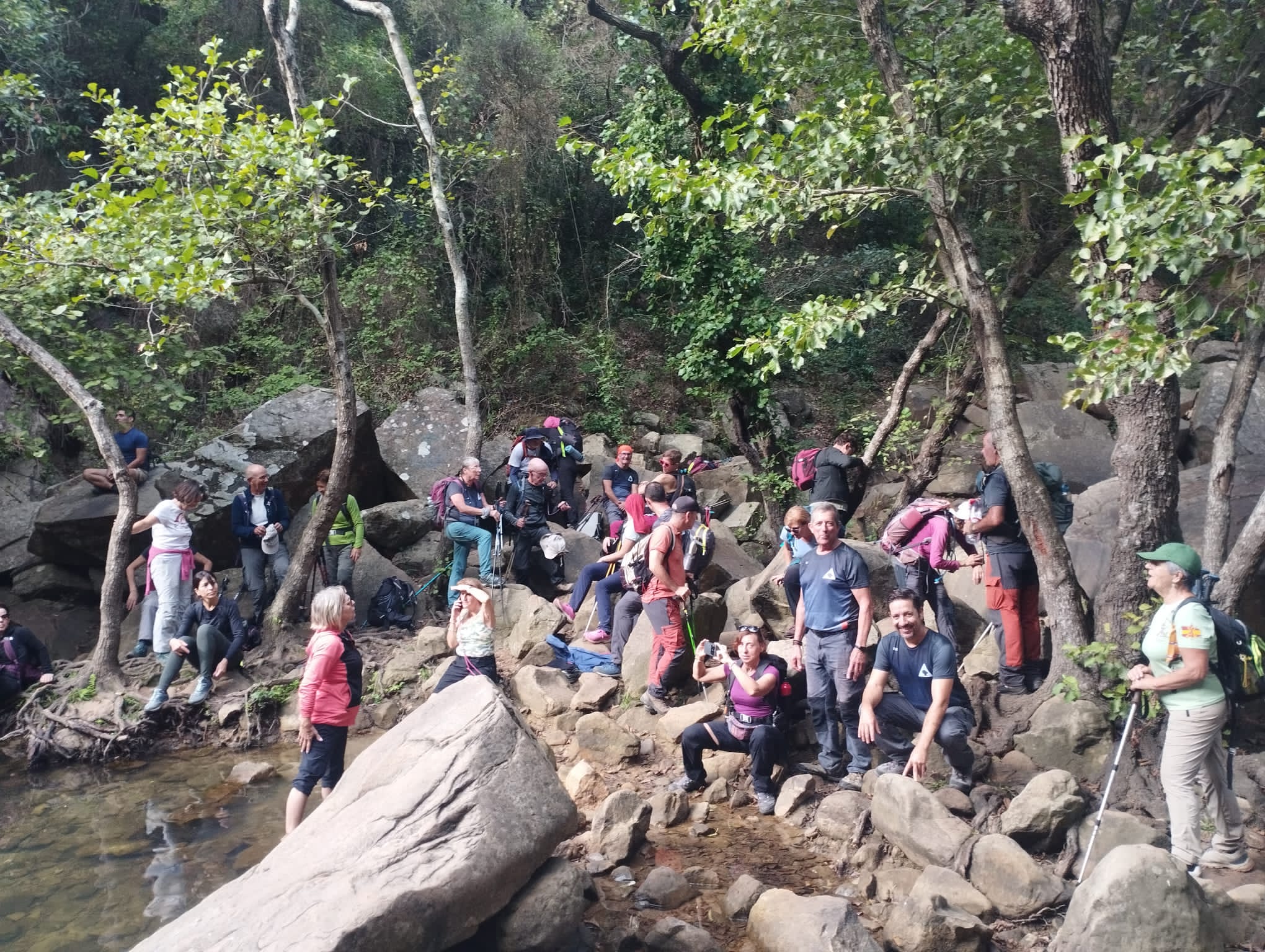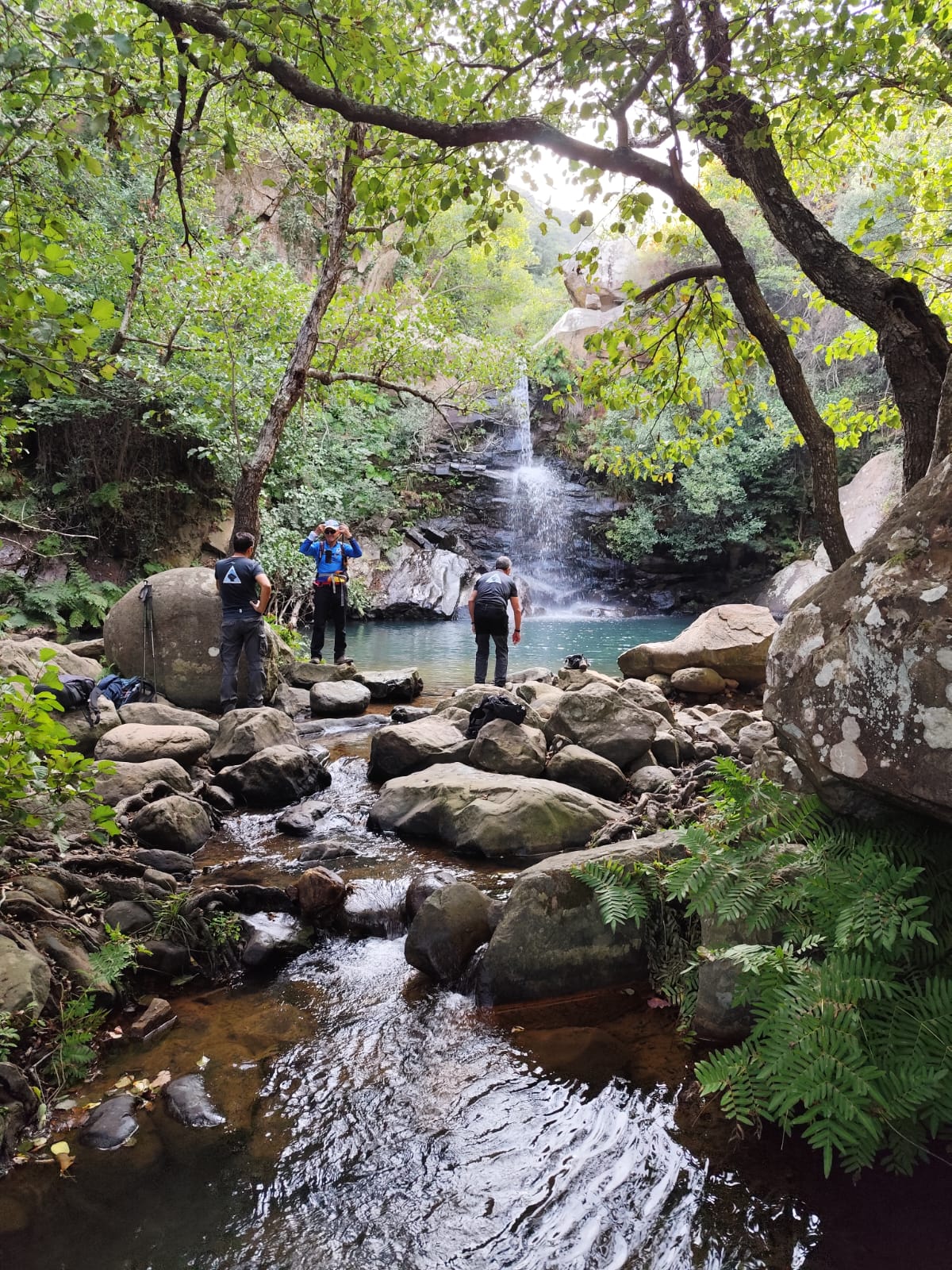 Después empezamos a volver, por otros senderos, igual de bellos que los primeros, pero que nos llevaron a otros sitios pendientes de la ruta. Como son la Garganta del Capitán, con agua cristalina y una preciosa cascada, donde varios refrescamos nuestros pies y alguno hasta se bañó de cuerpo entero, ante la envidia de todos, porque ya a esa altura estábamos sudados y acalorados.