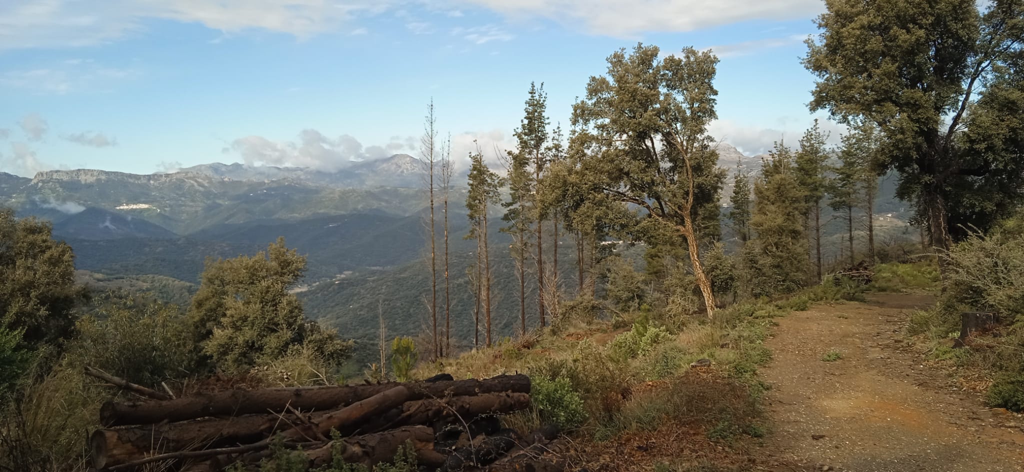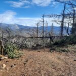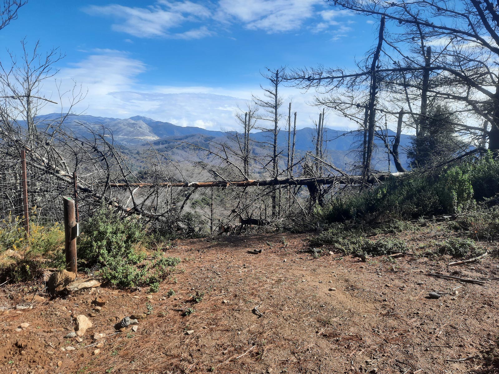 Toda esta parte de ruta es un poco descorazonadora, ya que, debido a los recientes incendios, hay árboles caídos y leña a ambos lados del carril. La solución nos la ofrece concentrarnos en las magníficas vistas. Ha despejado, luce el sol y la visibilidad es total.