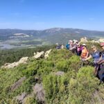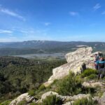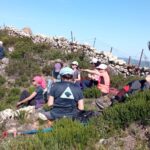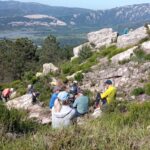 Al lado del carril hay una pradera que parece adecuada para parar a comer, os invia a para a comer, pero decidimos seguir el carril hasta llegar a un conjunto rocoso y enfrente una buitrera. Los buitres vuelan sobre nuestras cabezas. Ahora sí, paramos y aquí disfrutamos de una maravillosa comida campestre.