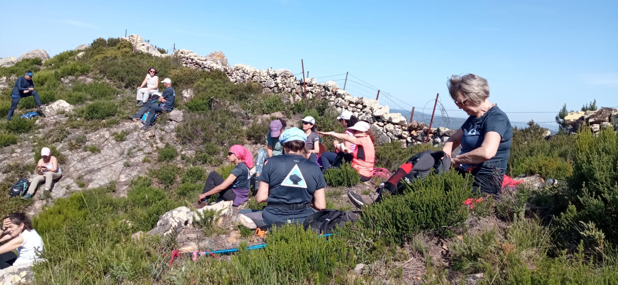 Al lado del carril hay una pradera que parece adecuada para parar a comer, os invia a para a comer, pero decidimos seguir el carril hasta llegar a un conjunto rocoso y enfrente una buitrera. Los buitres vuelan sobre nuestras cabezas. Ahora sí, paramos y aquí disfrutamos de una maravillosa comida campestre.