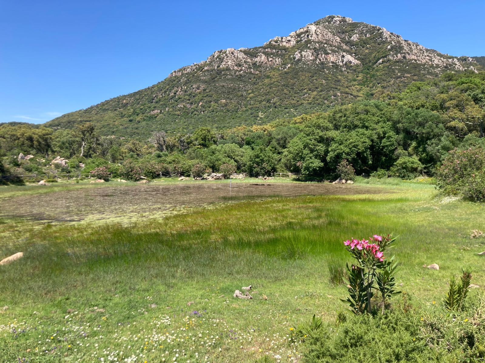Según vamos caminando, dejamos la laguna a nuestra derecha, y ahora se nos antoja aún más bonita que esta mañana, por el efecto que produce la luz solar al reflejarse sobre su superficie.