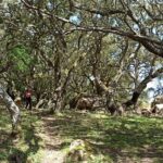 Desandamos los 500 metros que nos separan del Puerto de las Calabazas, y tomamos el “Sendero Travesía del Aljibe”, que discurre paralelo a un muro de piedra que separa los límites de las provincias de Cádiz y Málaga.