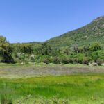 Tras la habitual recepción y bienvenida por parte del coordinador-responsable del grupo, con su breve resumen de la ruta y recomendaciones a seguir, sobre las 09:43 horas iniciamos la marcha, dirigiéndonos en primer lugar, como no podía ser de otra manera, hacia la Laguna del Picacho, que se encuentra a escasos 200 metros del punto de partida, siendo paso obligado tanto a la ida como a la vuelta. Pese a su escaso nivel de agua, su mera contemplación no deja indiferente nadie.