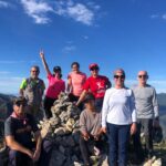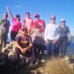 Dejamos nuestras mochilas al cuidado de los compañeros que decidieron no continuar la ascensión, y subimos por una estrecha y corta vereda, salpicada de algunos desniveles rocosos que exigían dejar los bastones y usar las manos para afrontar ciertas trepadas. Sobre las 10:50 horas llegamos al hito de piedra que marca el punto más alto de esta sierra, el Picacho de Castillejos, a 1.238 metros de altitud, y justo en el kilómetro 3,3.