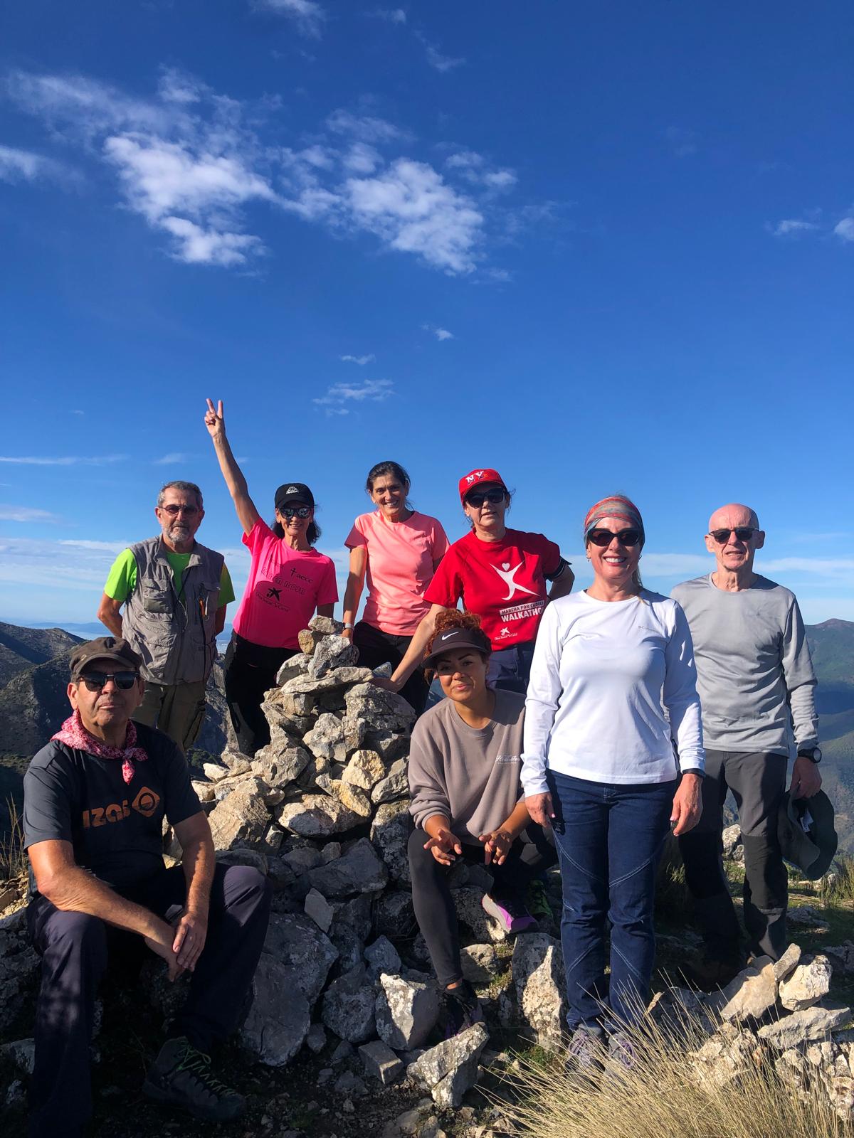 Ya habían desaparecido las pocas nubes que teníamos al principio, y el espectáculo que se abre ante nuestros pies es realmente impresionante, destacando la cresta de Los Cuchillos, así como los Cerros Gurapalo, Fulaneja y Lastonar en Sierra Blanca, y parte de la Costa del Sol Occidental y Campo de Gibraltar con el Atlas marroquí de fondo. También se divisaban Sierra Bermeja, Sierras Palmitera y Sierra Real en lontananza, y las poblaciones cercanas de Alozaina y Yunquera.