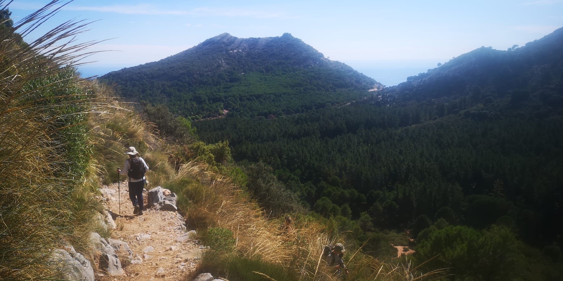De nuevo en el sendero, continuamos descendiendo un par de kilómetros pasando por el rodal de pinsapos en la Cañada del Infierno, en busca de un atajo que tenemos marcado en el kilómetro 6, a 1.030 metros de altitud, pero que lamentablemente nos lo encontramos totalmente impracticable debido a la abundante vegetación espinosa que lo cerraba.