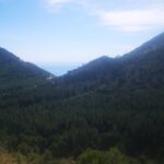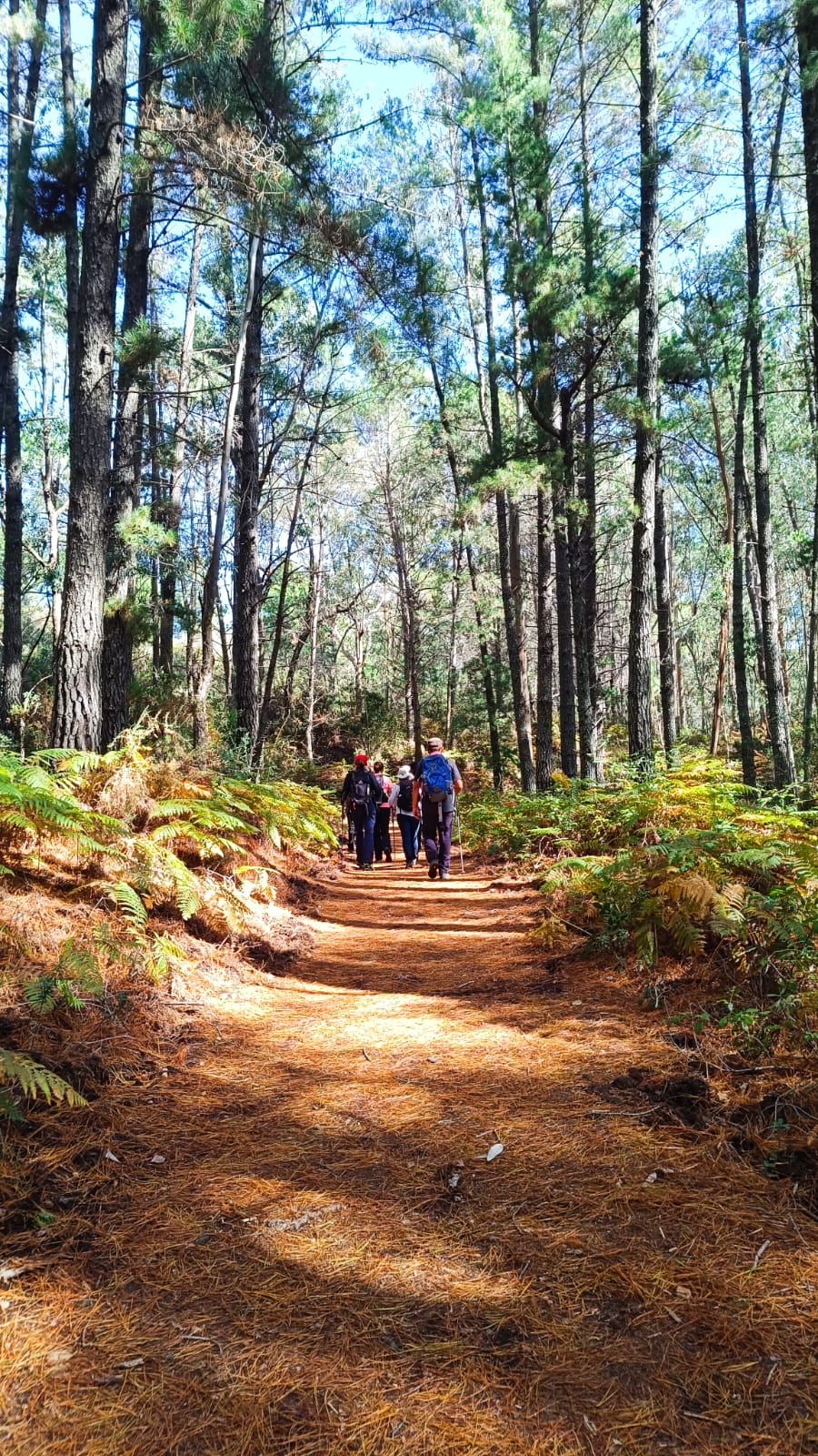 Seguimos descendiendo cómodamente disfrutando de unas magníficas vistas del impresionante bosque de pino Insigne, o Monterrey o canadiense, como también se le conoce, que se extiende generosamente a media ladera de la vertiente Norte y Oeste de la Cruz de Juanar. Esta especie de pino, originario de California, es de gran porte y crecimiento rápido, pudiendo alcanzar los 50 metros de altura y hasta 50 cm de diámetro en 20 años.