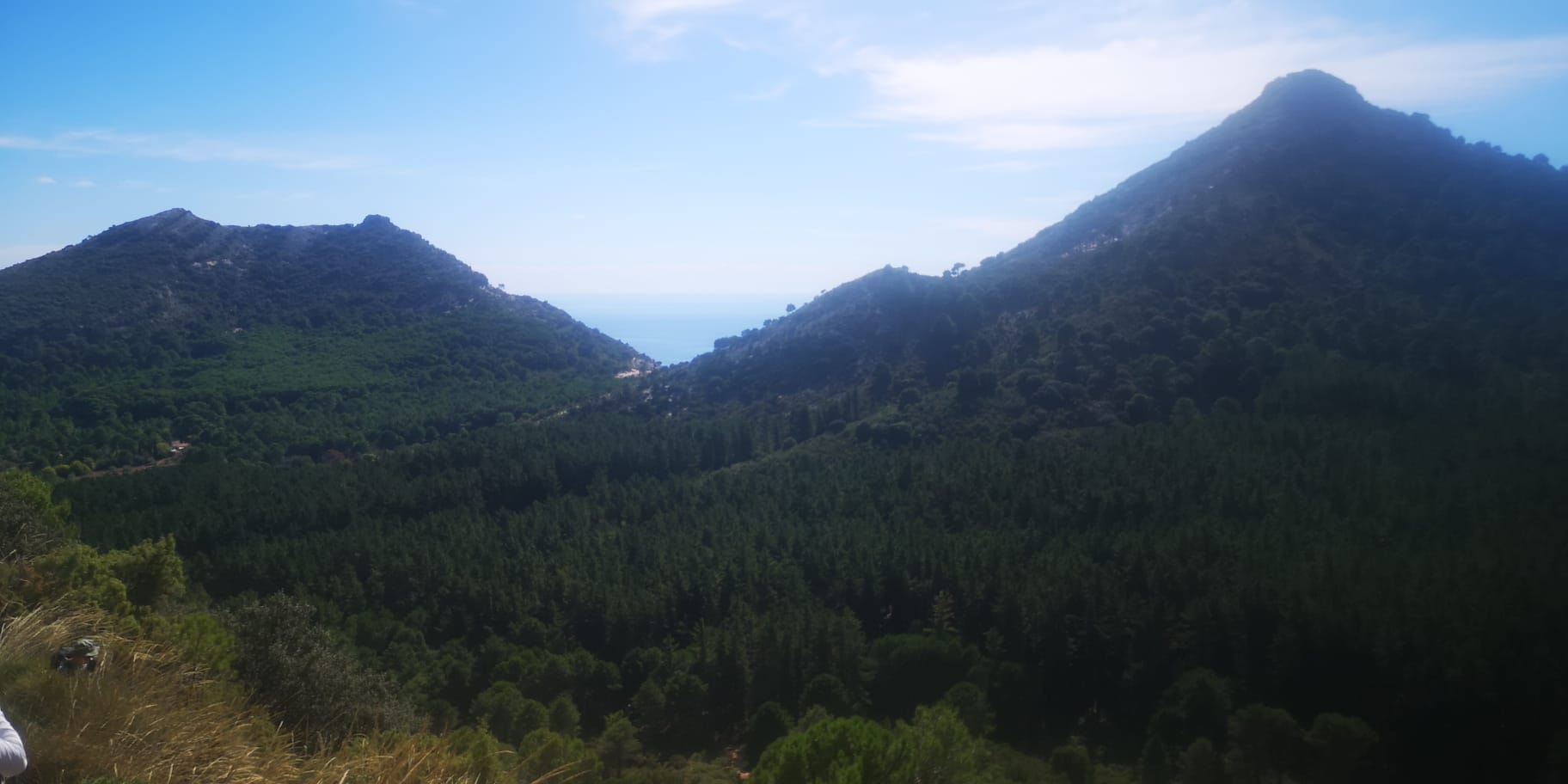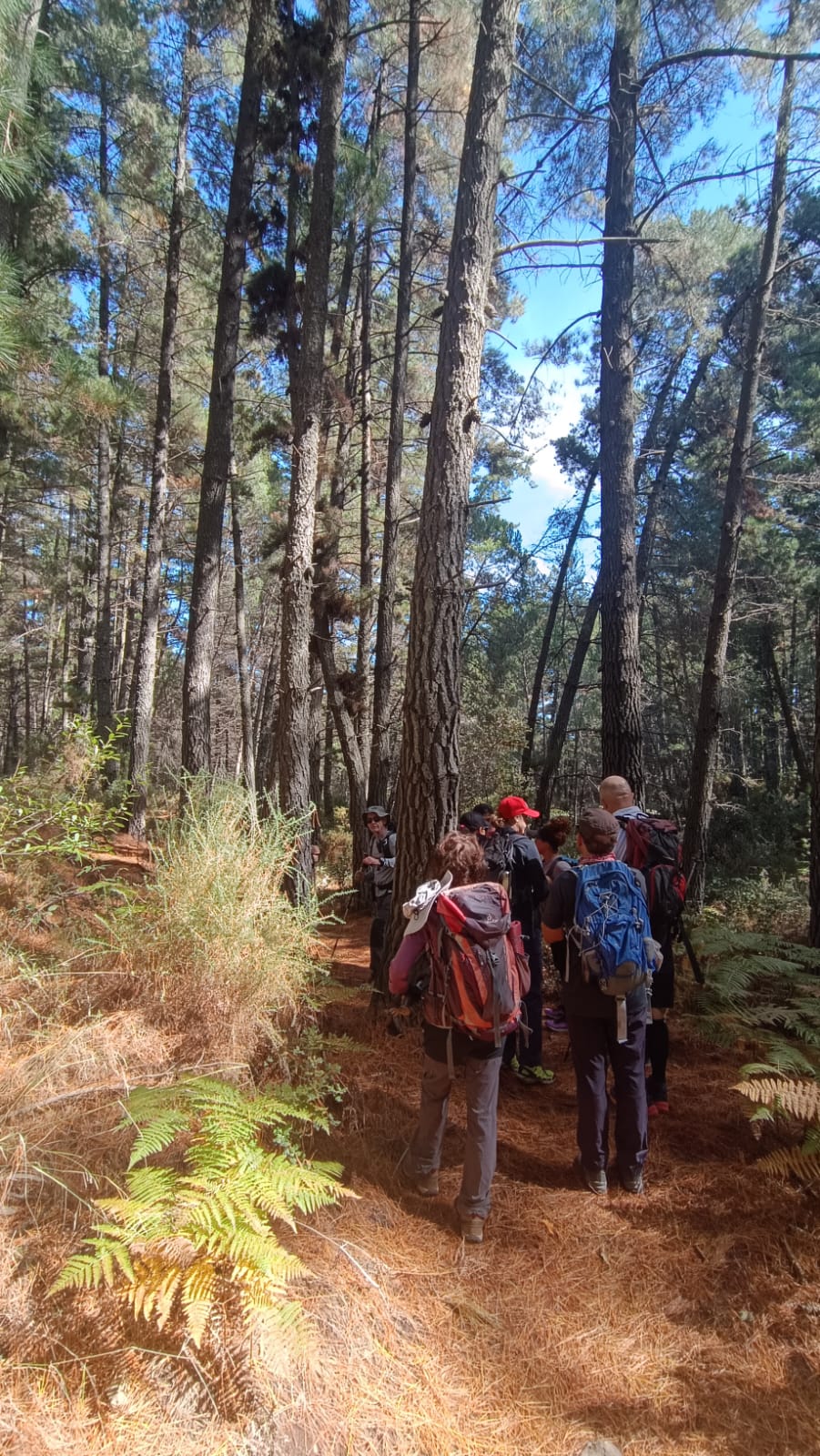 Poco antes de abandonar el Puerto de la Viborilla, y a pocos metros pasado el cruce de Istán (km 7, 1.021 msnm), sobre las 12:55 horas encontramos un buen lugar a la sombra de unos pinos para almorzar. Al cabo de unos 30 minutos reemprendemos la marcha, enfocando el último tramo en bajada hacia la zona conocida como el “Olivar de Juanar”.