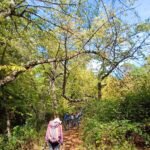 Entramos en dicho bosque, y al llegar al cruce de La Concha, en lugar de seguir por el sendero que lo rodea según el track que traemos, atravesando el Olivar de Juanar, decidimos introducirnos en la umbría del mencionado bosque, siguiendo un sendero paralelo al cauce del arroyo del mismo nombre, y disfrutar de un hermoso y relajante paseo de poco más de un kilómetro para llegar al final de la ruta entre majestuosos pinos, castaños, lentiscos, helechos y matorral vario propio de la zona.