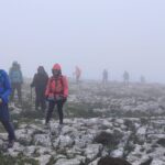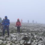 Así pues, iniciamos el camino de regreso en fuerte descenso, extremando todo tipo de precauciones, tanto para no perder el contacto visual entre el grupo, debido a la intensa niebla, como ante el riesgo de posibles caídas por las irregularidades y malas condiciones del terreno, según queda dicho más arriba.