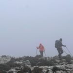 Otro obstáculo más a superar, una fría y densa niebla con escasa visibilidad, que viene a entorpecer la ya penosa marcha hacia la cumbre, sobre todo por el intenso aire frío y las fuertes rachas de viento que venimos soportando desde el comienzo, con sensación térmica de bajo cero.