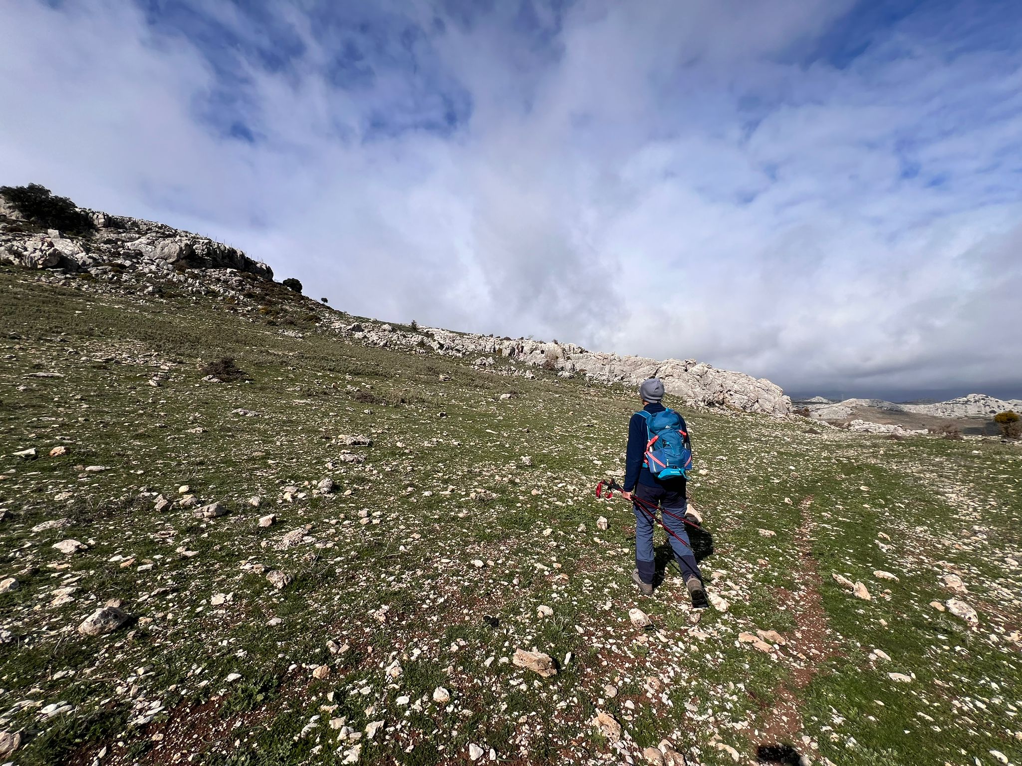 Al cabo de unos quince minutos reiniciamos la marcha hacia la crestería que nos conduciría hasta el Pico Blanquilla, faldeando a media ladera por la vertiente Noroeste.