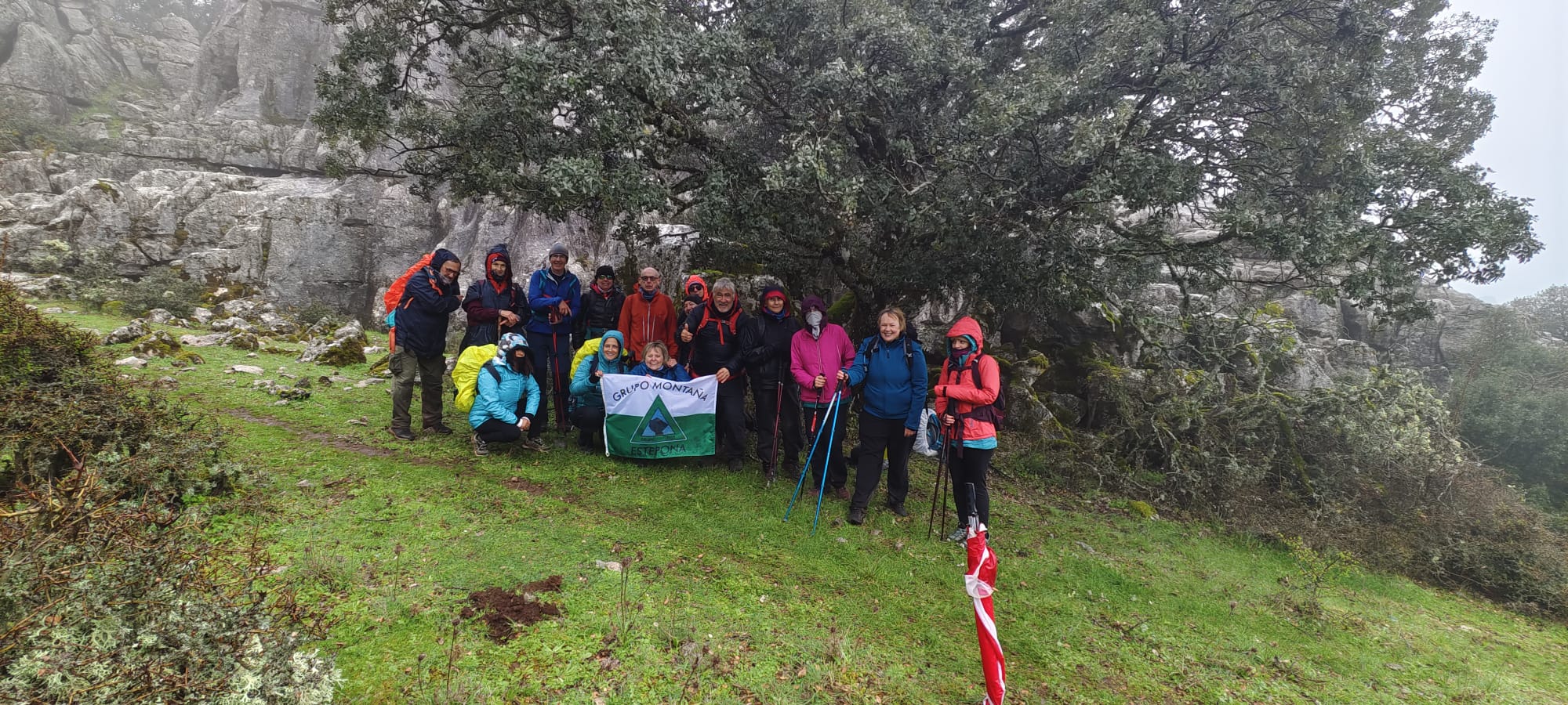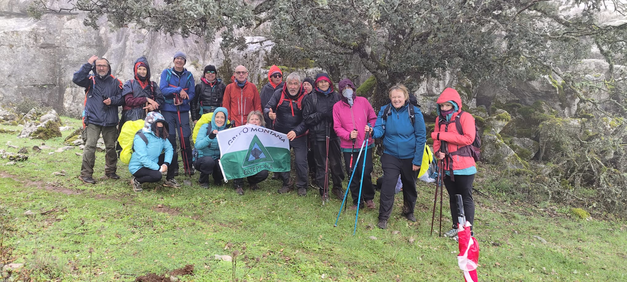 Hoy somos un reducido grupo de intrépidos senderistas, sólo 16 personas, que, a pesar del mal pronóstico del tiempo para esta zona, no nos resistimos de subir al monte.