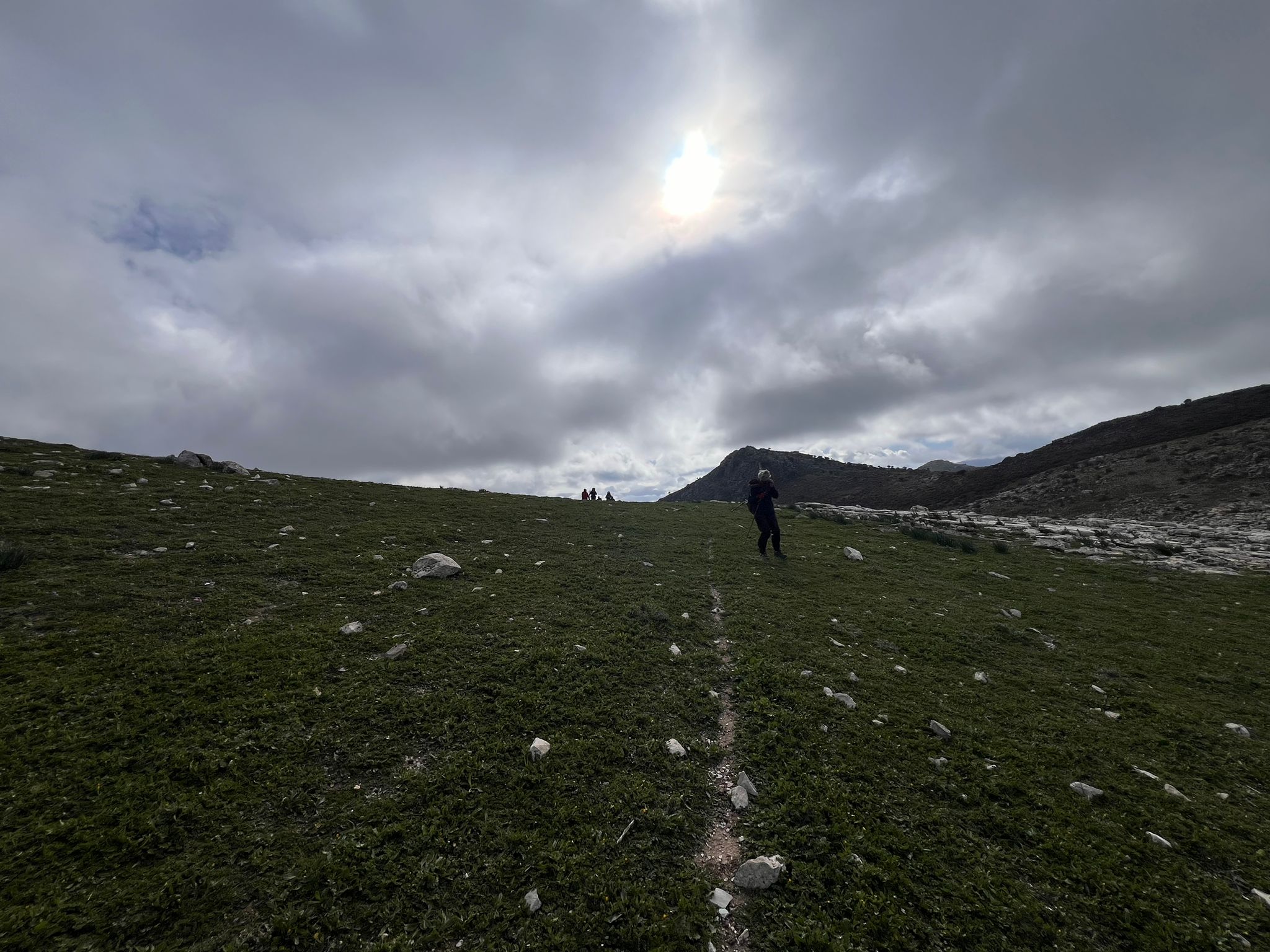 Ello, no obstante, también nos encontramos alternativamente con pequeñas sendas trazadas por el paso de animales y campo a través, tanto en subida como en bajada, con algunos tramos muy resbaladizos por el efecto de la humedad tanto sobre las rocas y piedras sueltas, como por el barro acumulado en nuestro calzado al pisar terreno reblandecido por las recientes lluvias.