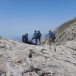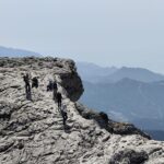 El último tramo fue bastante más rocoso y por la altitud nos mostraba vistas de cimas y pueblos lejanos, incluso ya veíamos nebulosamente el mar, desde algunos puntos.