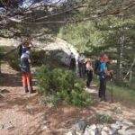 Iniciamos la ruta a las 09:20 por un sendero rodeado de pinos que nos daban sombra y sorprendían por su altitud, entorno que fue cambiando a medida que ascendíamos, ya que fuimos viendo árboles y arbustos de distintas especies acompañados de roca.