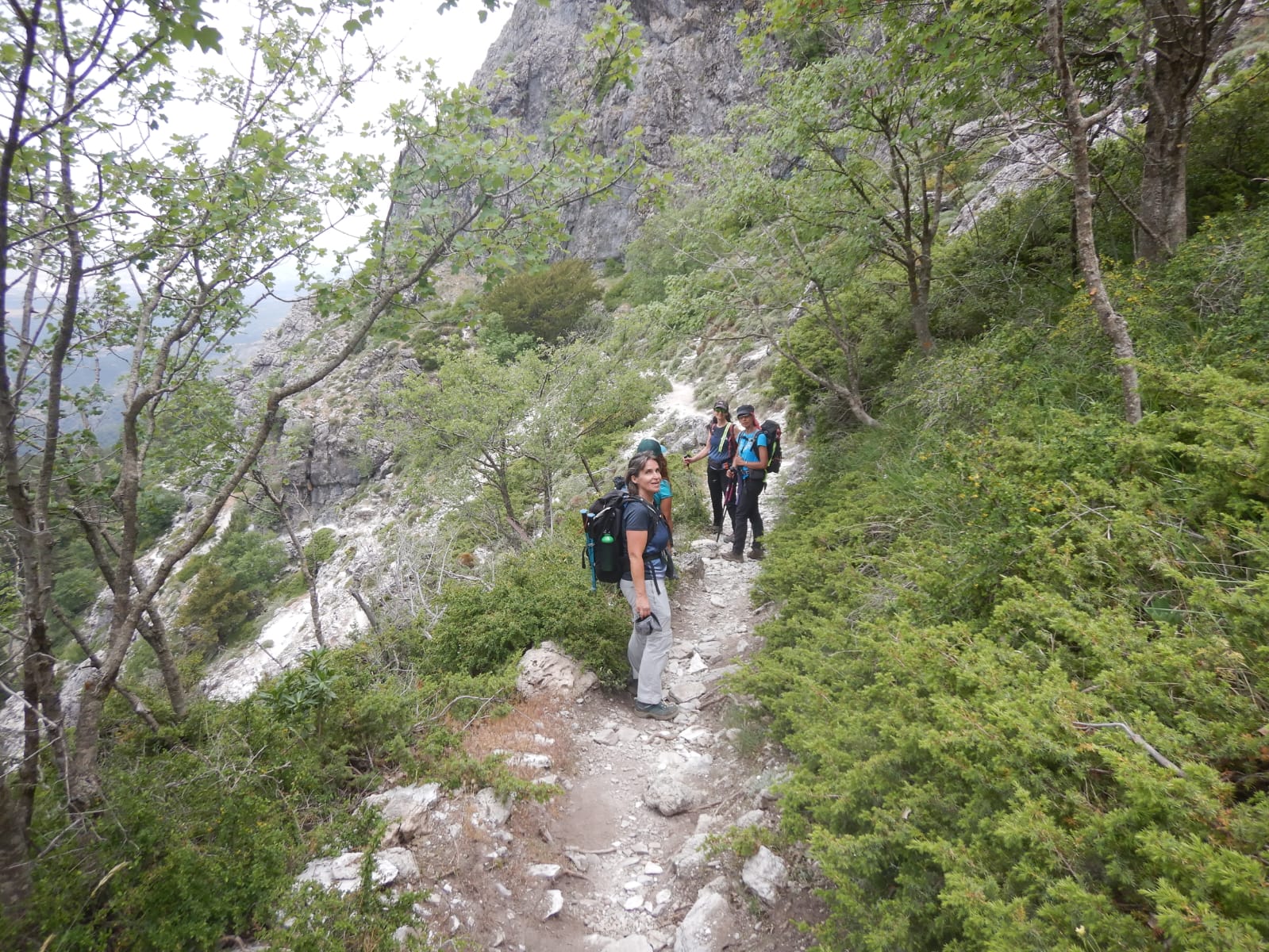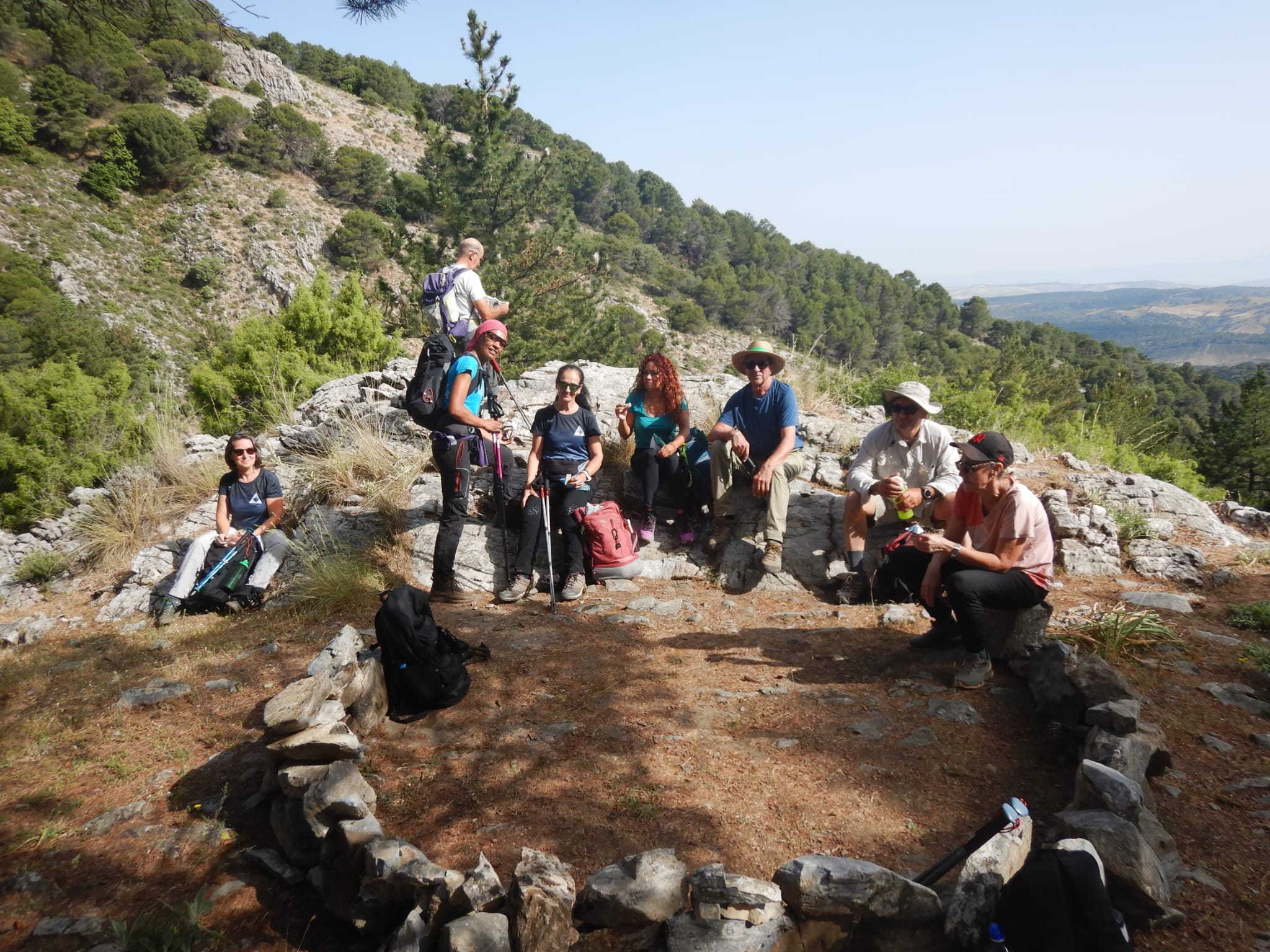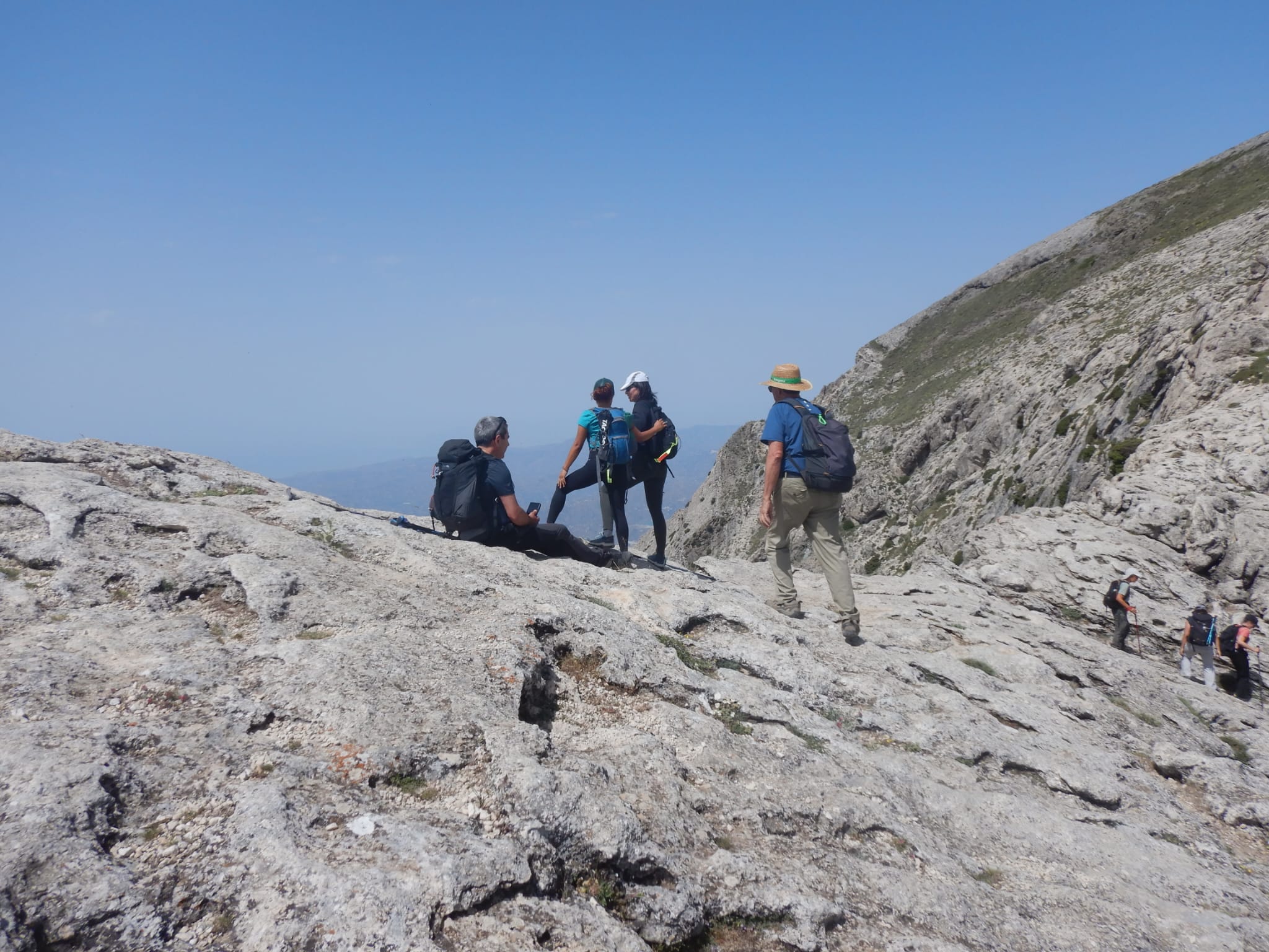 El último tramo fue bastante más rocoso y por la altitud nos mostraba vistas de cimas y pueblos lejanos, incluso ya veíamos nebulosamente el mar, desde algunos puntos.