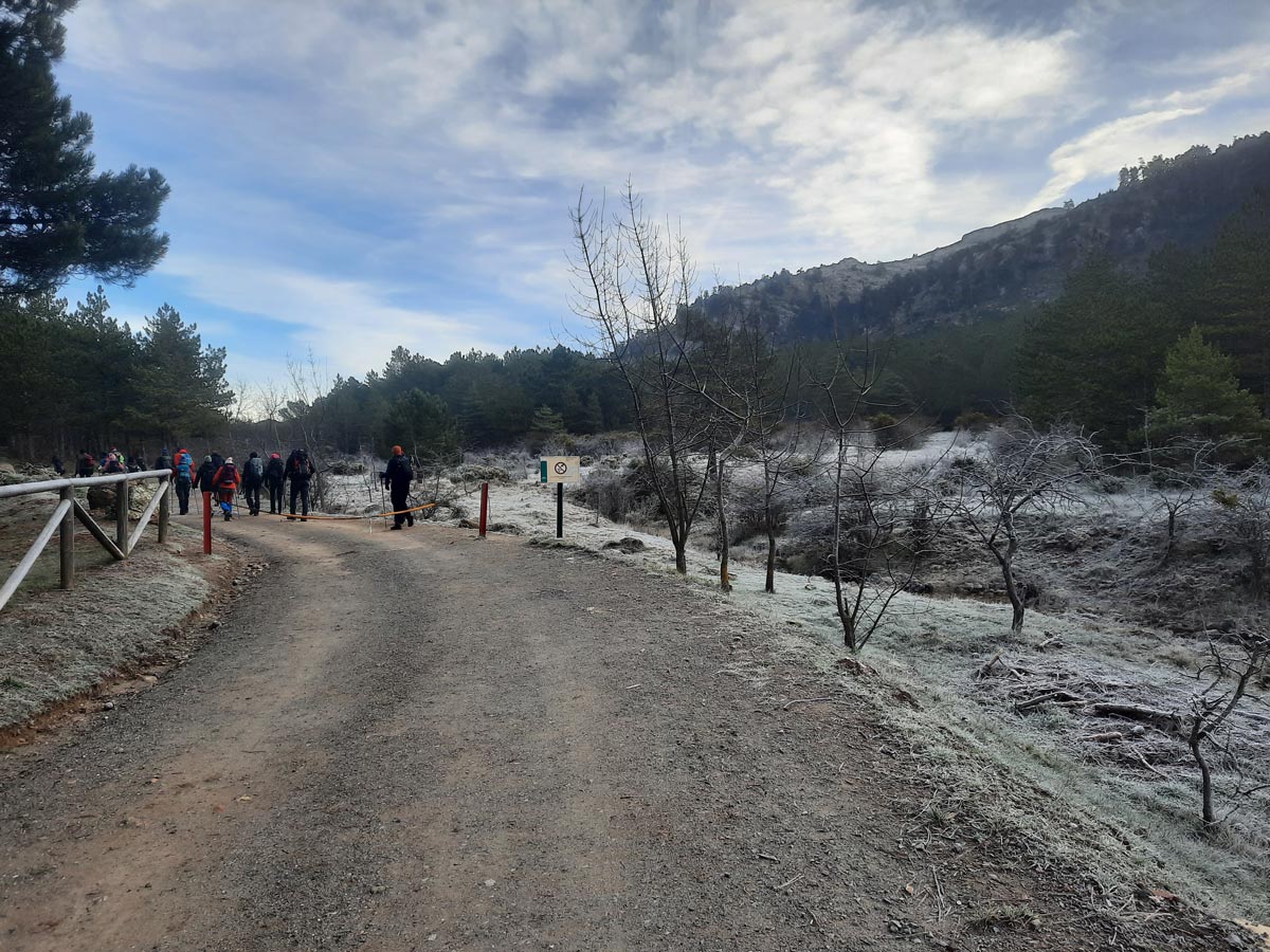 Iniciamos la marcha a las 9,15. Nos encaminamos hacia la “Cañada del Cuerno”. Teníamos que, debido a las lluvias de la semana pasada, nos íbamos a encontrar con barro, pero no es así, el terreno esta perfecto, y la subida no presenta otra dificultad que el esfuerzo físico que supone el continuo desnivel.