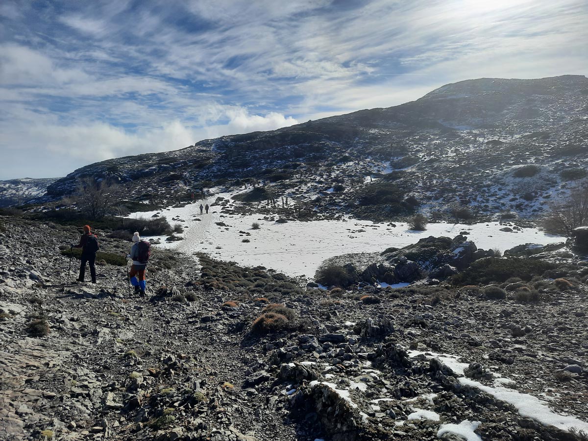 Seguimos caminando llegamos a la zona del Nevero. Hay una fina capa de nieve en toda la zona, pero no dificulta la marcha. Precioso espectáculo.