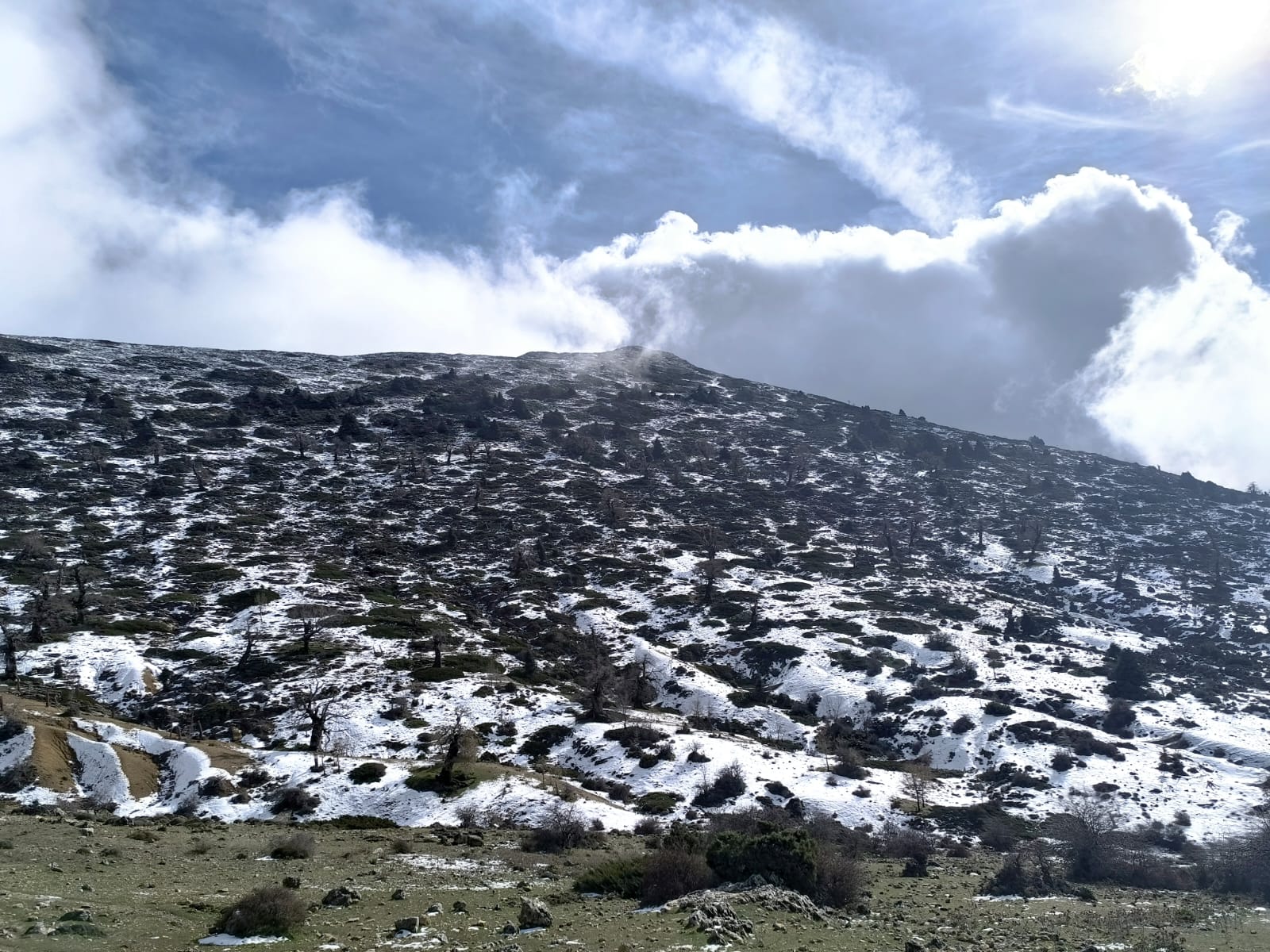 En la cima al parecer, no había visibilidad ninguna debido a la presencia de nubes.
