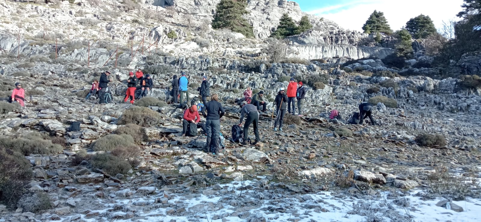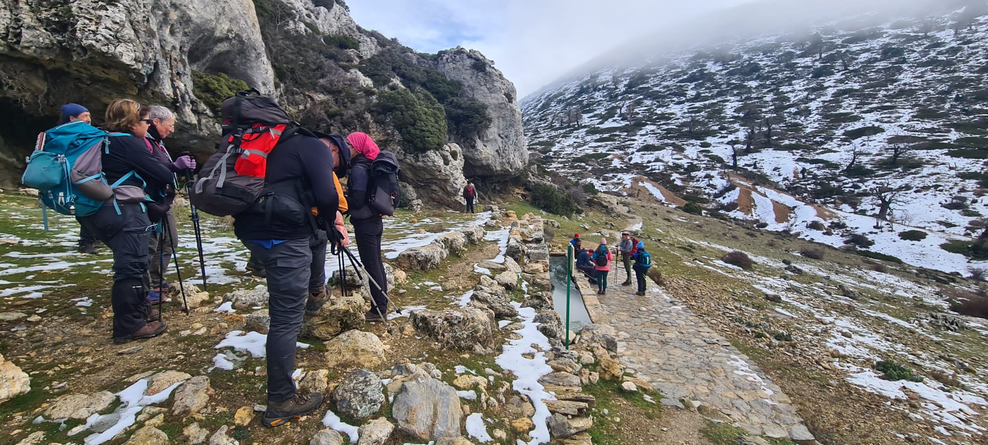 La bajada es sumamente dura y dificultosa. Se hace muy lento, pero por fin, después de un gran esfuerzo, se reúne de nuevo el grupo en el “Puerto de los Pilones” para comer.