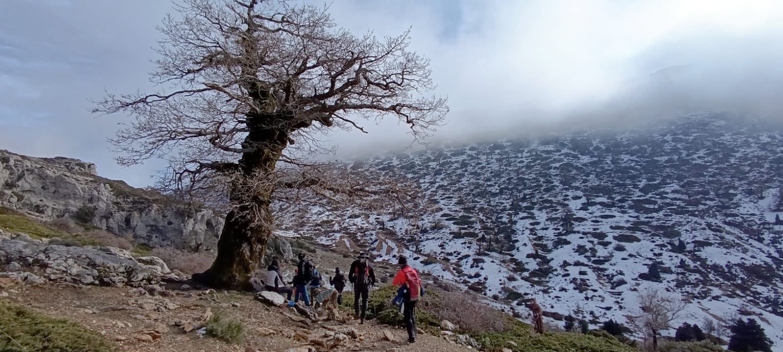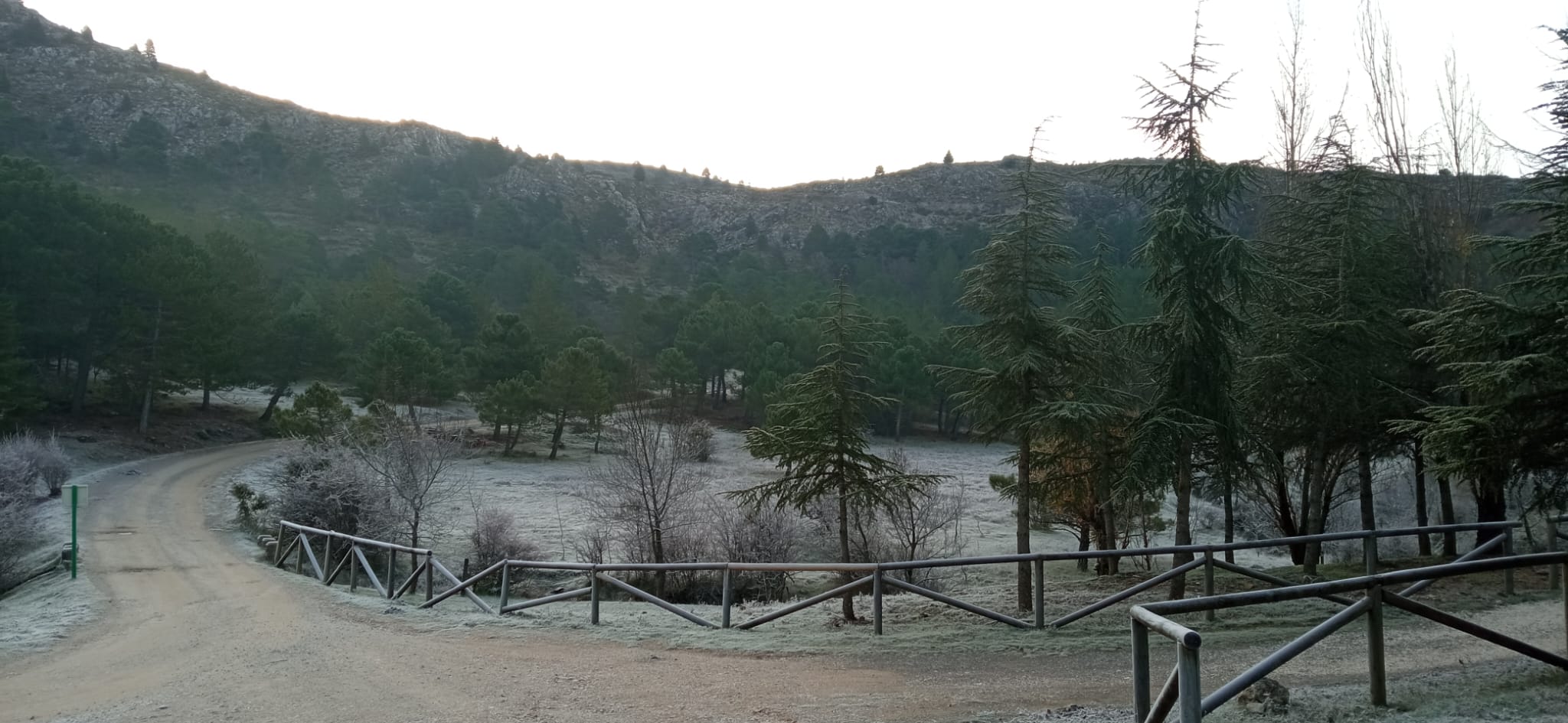 Hace un día bonito, claro y soleado, frio, cero grados y escarcha en el suelo. pero sin viento. Nos imaginamos que tendremos buenas vistas desde la cima, nada mas lejos de la realidad. Como luego veremos, estamos en la Sierra de las Nieves, y aquí todo es posible.