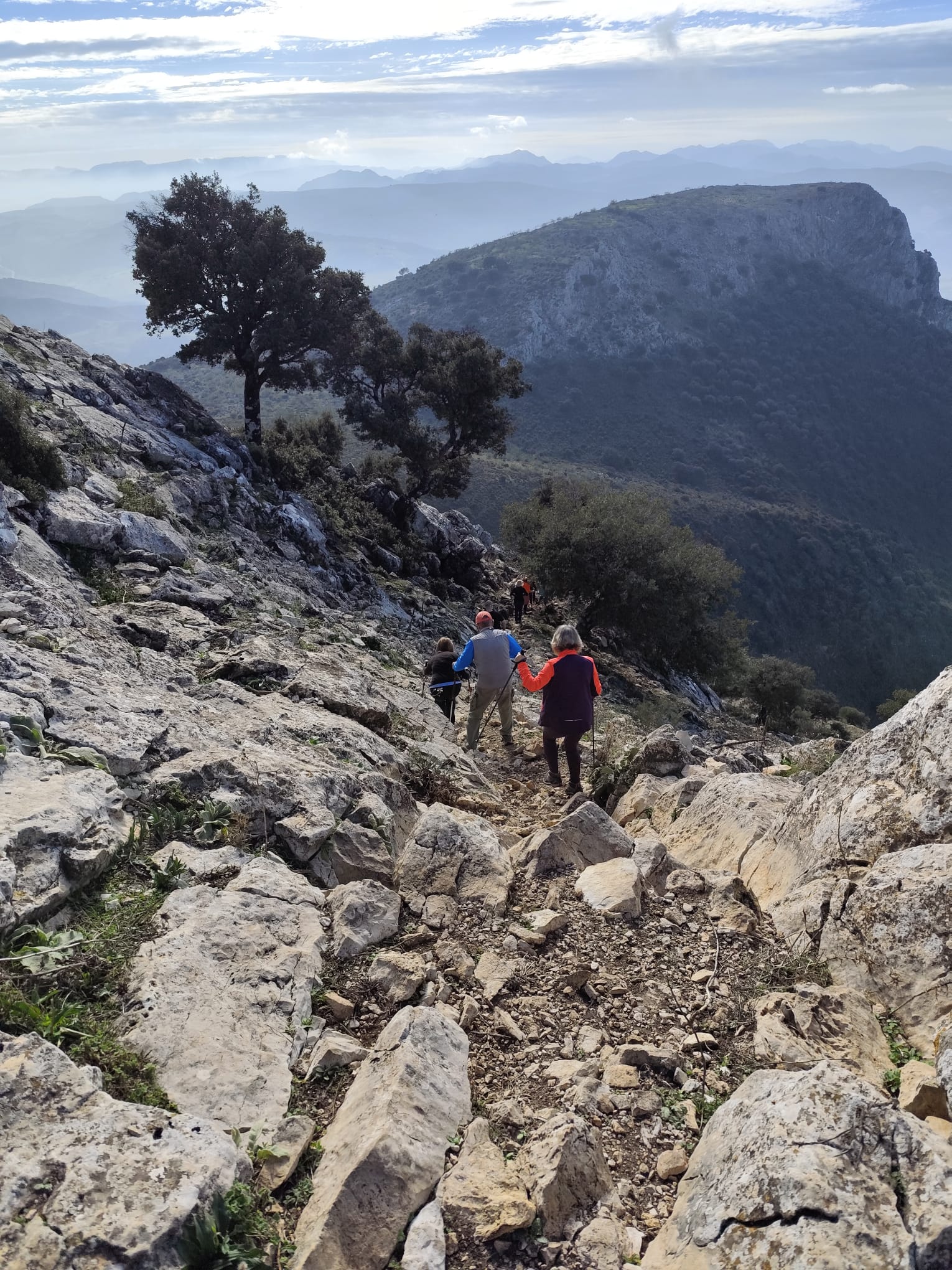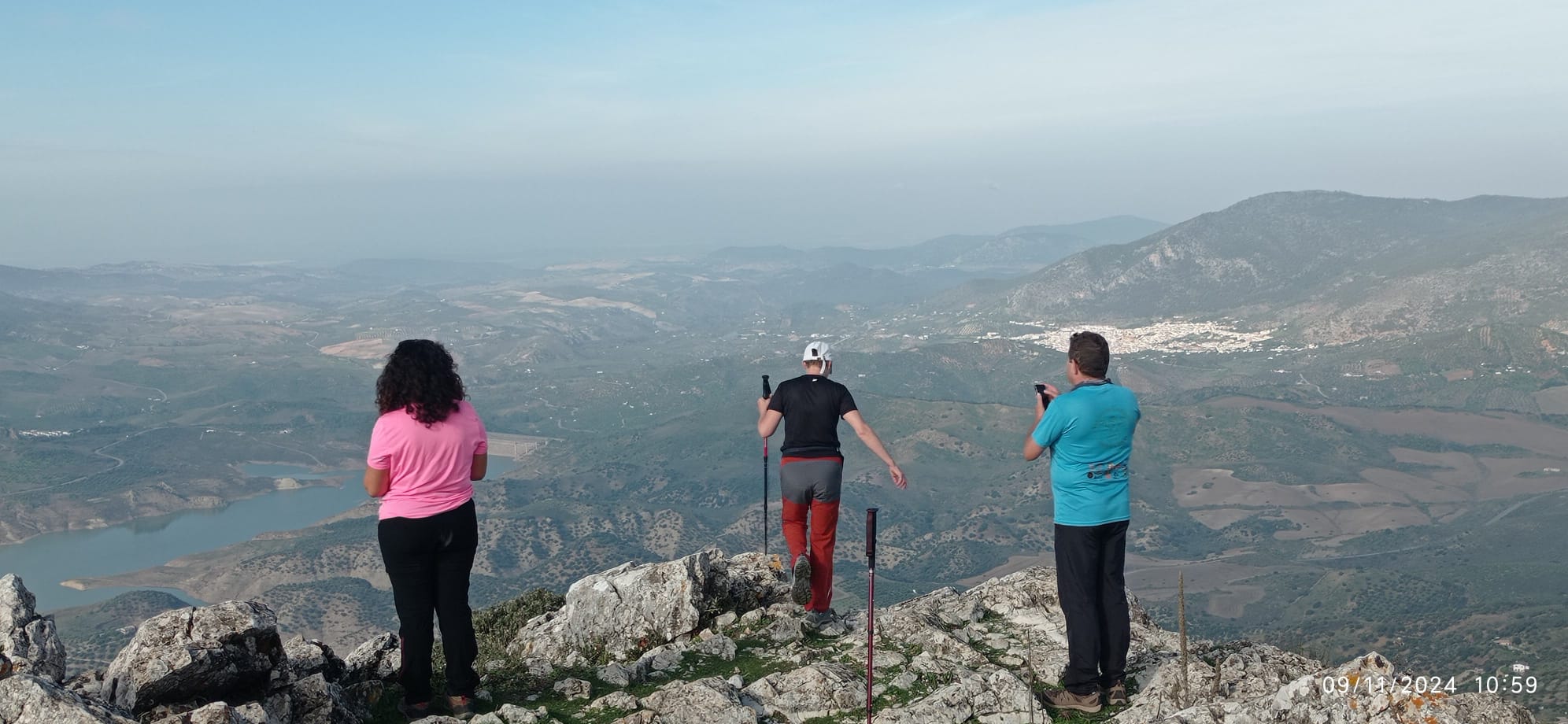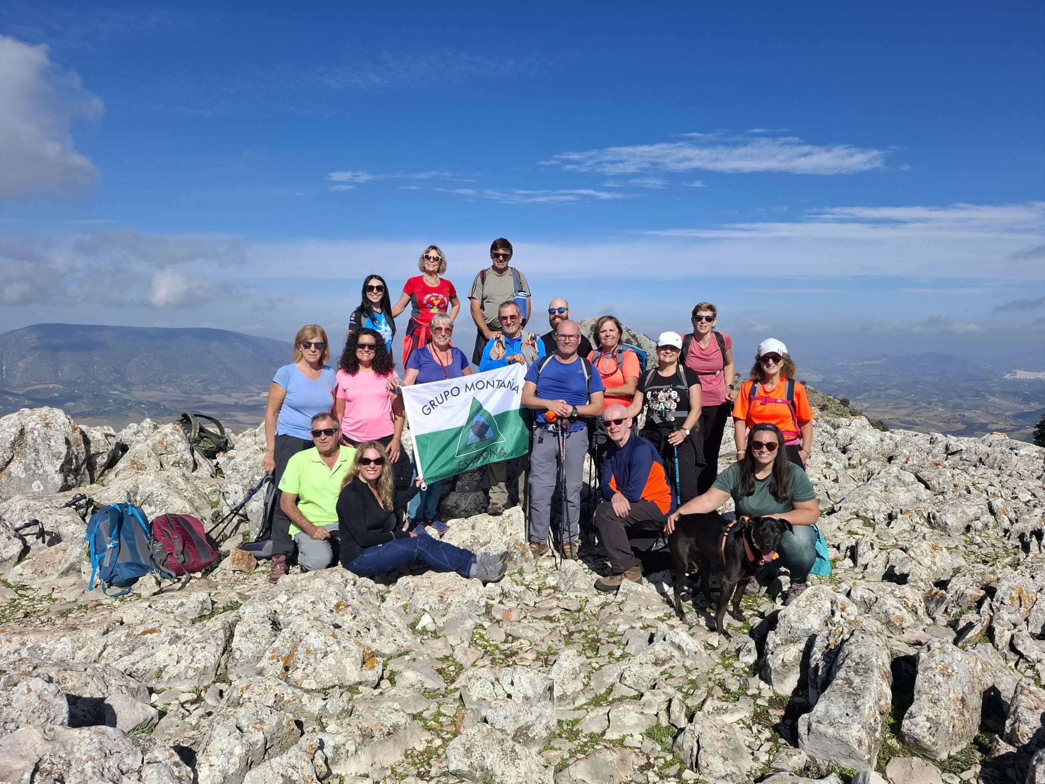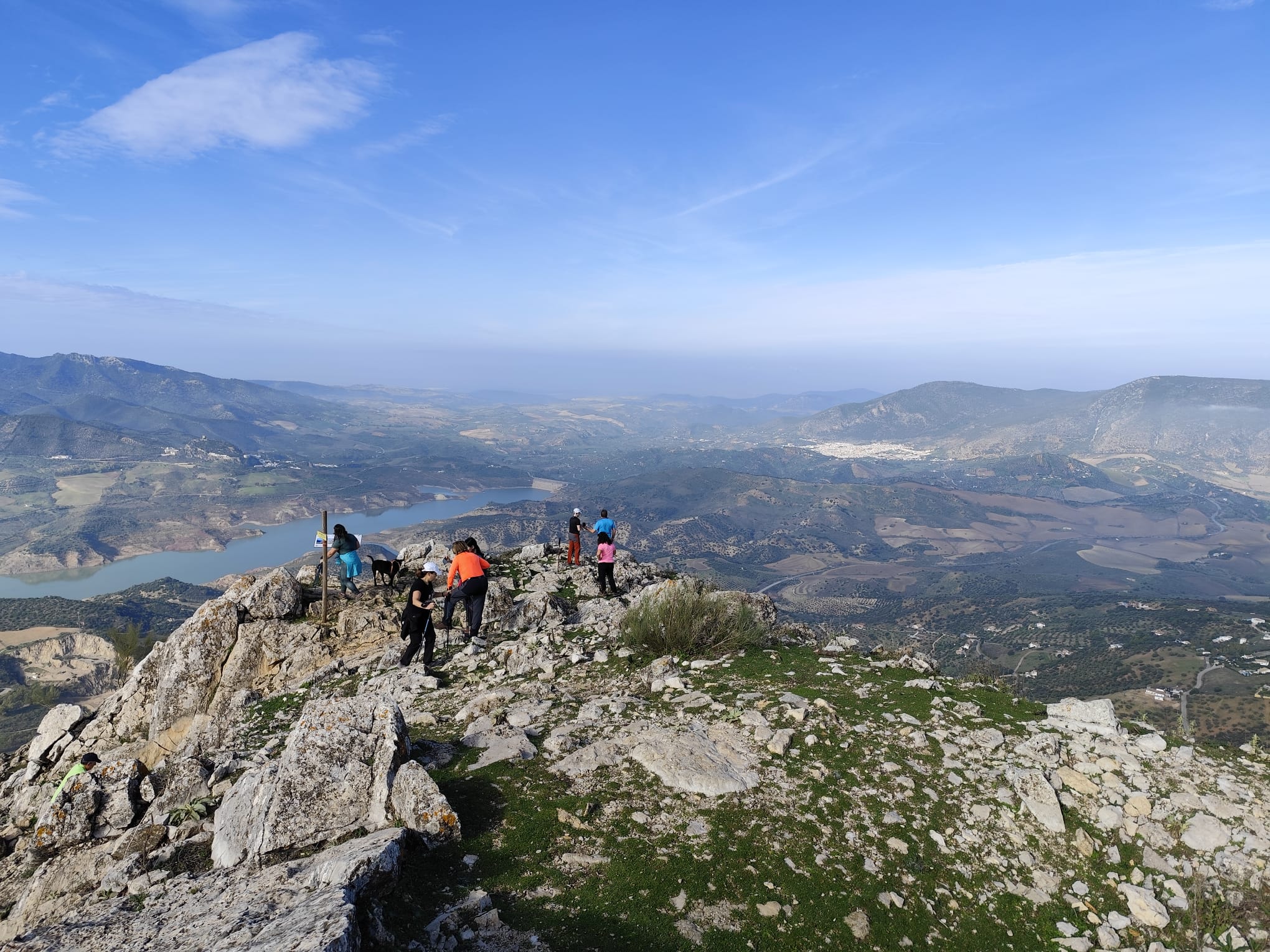 Como viene siendo habitual, tras admirar sus insuperables panorámicas de la Sierra de Grazalema, Sierra de Lijar, Sierra de las Nieves, el Peñón de Zaframagón, los pueblos de Zahara de la Sierra, Olvera y Algodonales, y el embalse de Zahara-El Gastor, nos hacemos la tradicional fotografía de grupo, y seguidamente desandamos nuestros pasos para reunirnos con el compañero que se quedó abajo.